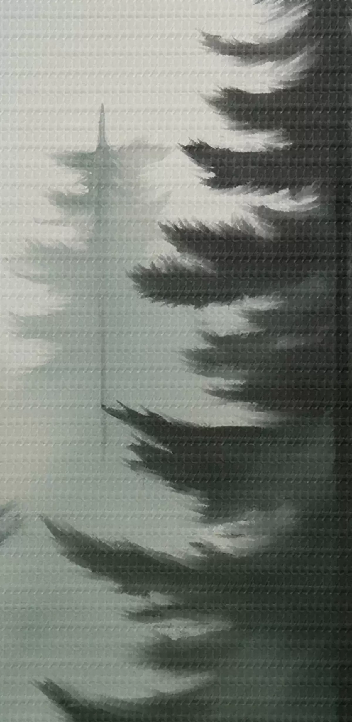 Ahhoz, hogy a vásznat a feszítőrúdra feszítsük anélkül, hogy a kép megsérülne, tükrözött képet használunk.