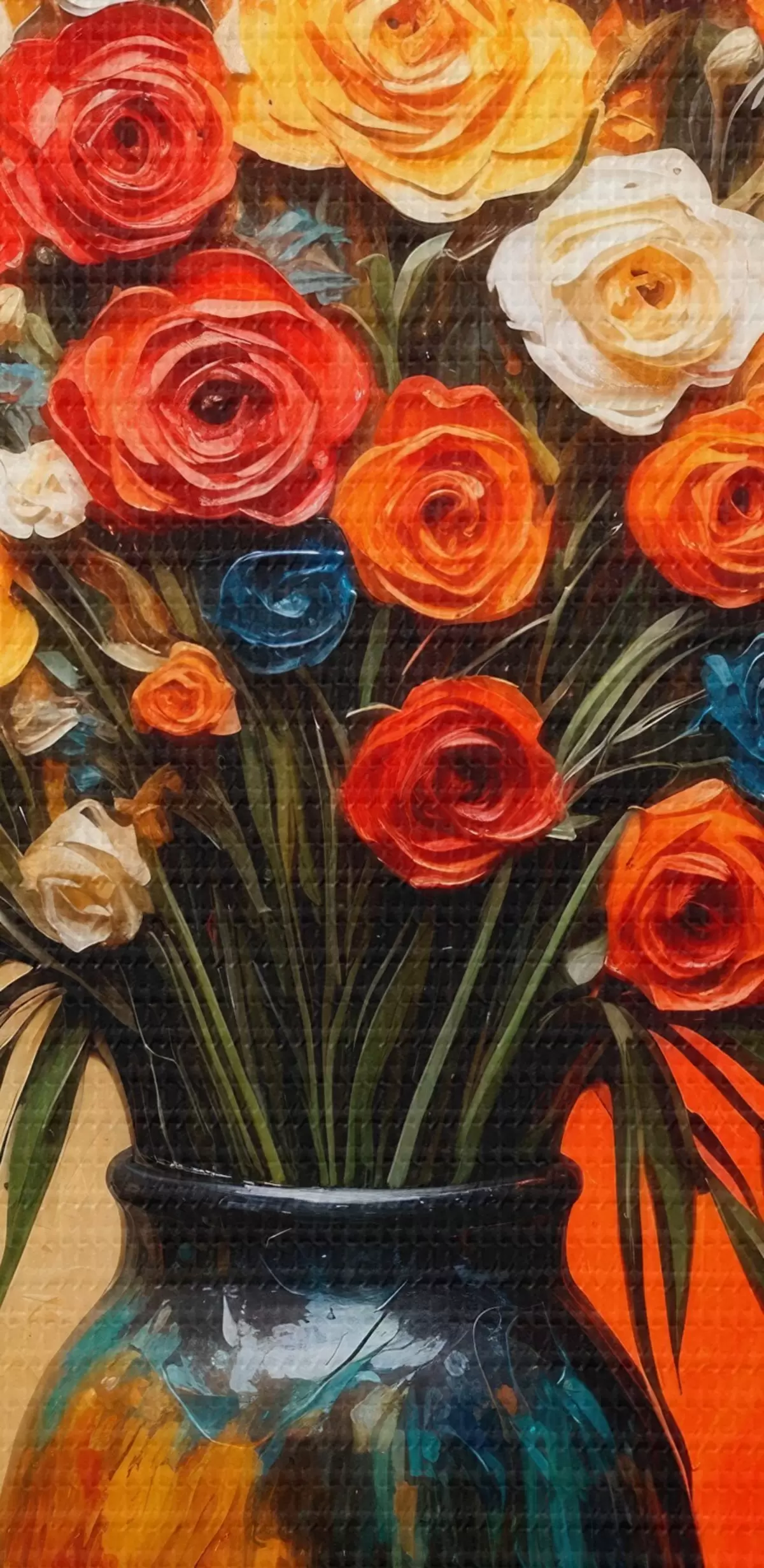 Vászonkép Különböző virágok vázában piros-sárga háttéren Nr s43867