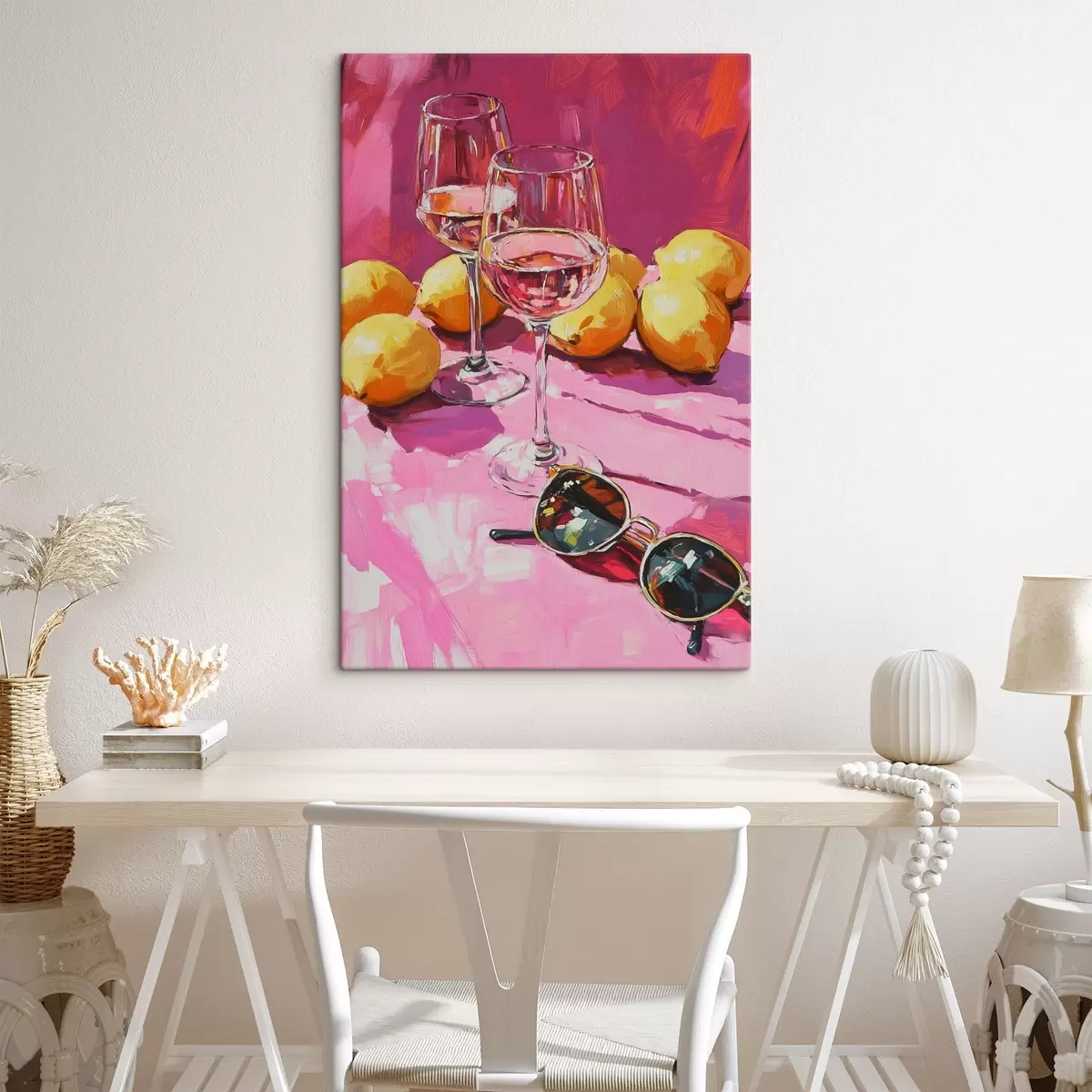 Vászonkép Olaj stílusú absztrakció poharakkal, citrommal és napszemüveggel Nr s43884
