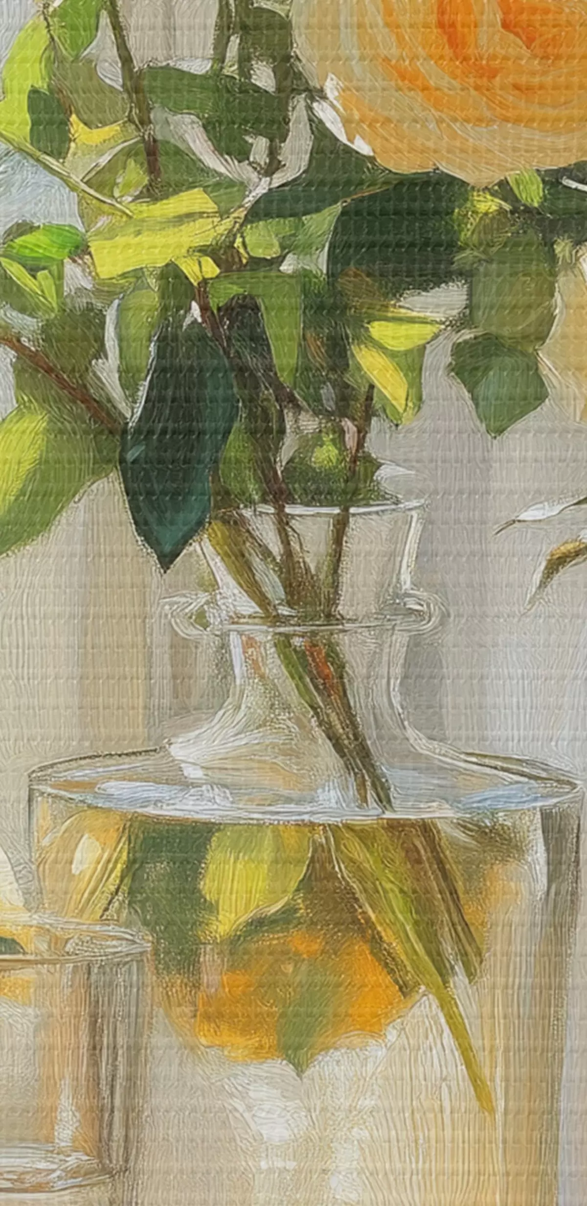 Vászonkép Rózsák vázában, olaj stílusú rajz, szelíd napfény, citrom, tavasz Nr s43887