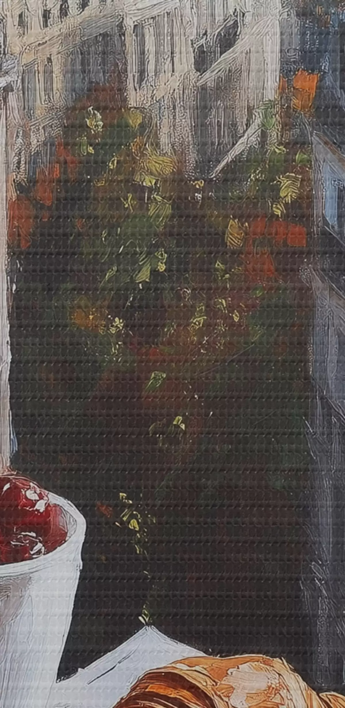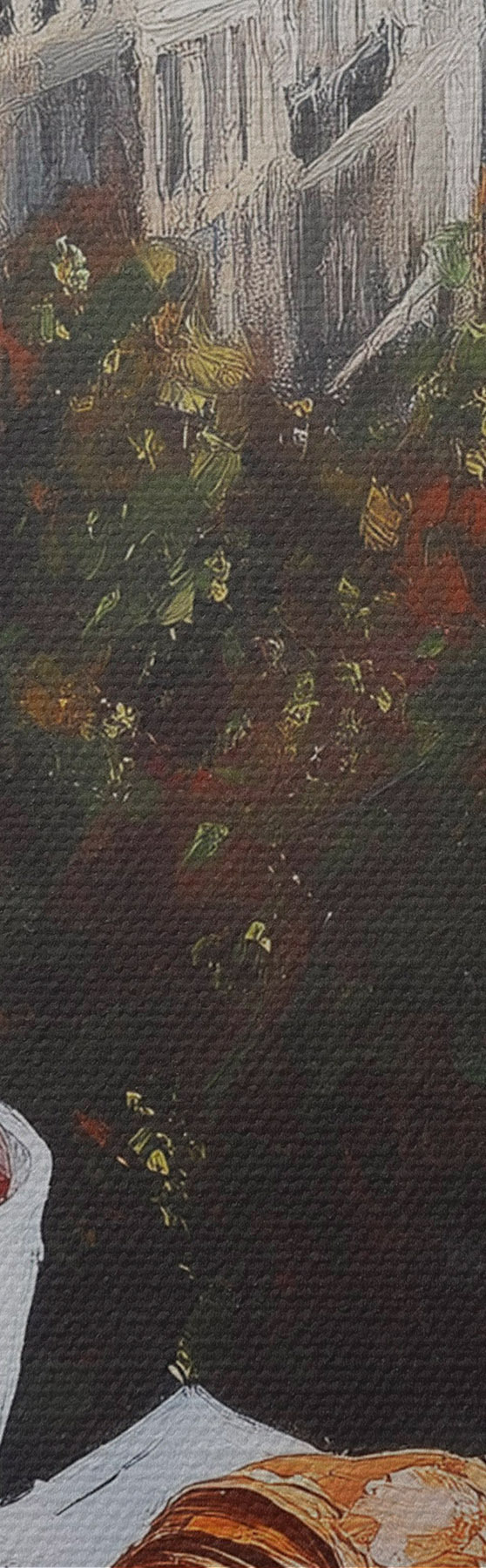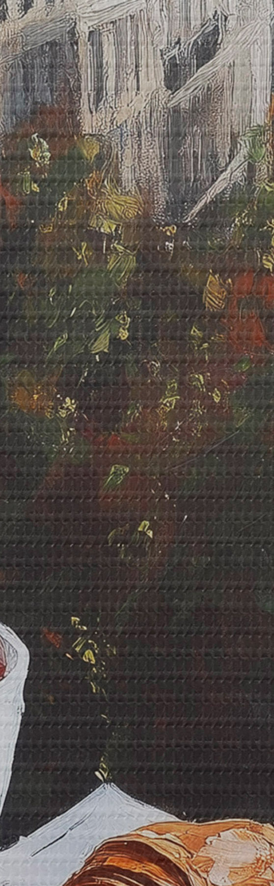 Ahhoz, hogy a vásznat a feszítőrúdra feszítsük anélkül, hogy a kép megsérülne, tükrözött képet használunk.