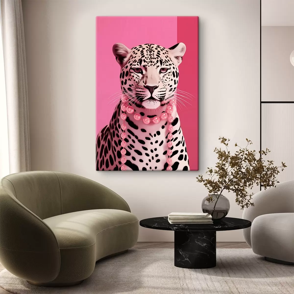Vászonkép Portré egy leopárd rózsaszín nyaklánccal Nr s43976