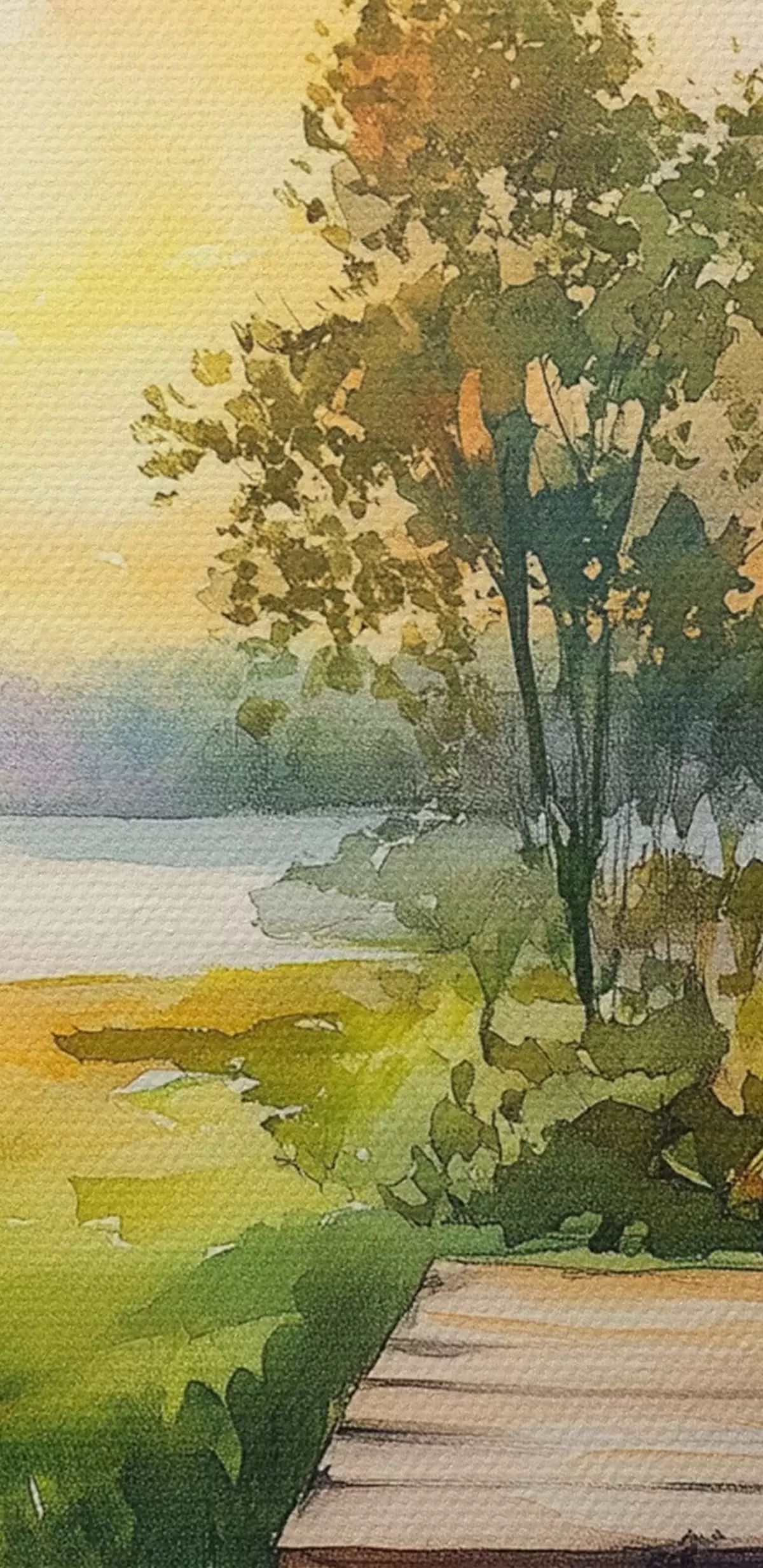 Vászonkép Naplemente színek, parasztház, akvarell stílus, rusztikus, nyári virágok Nr s44017