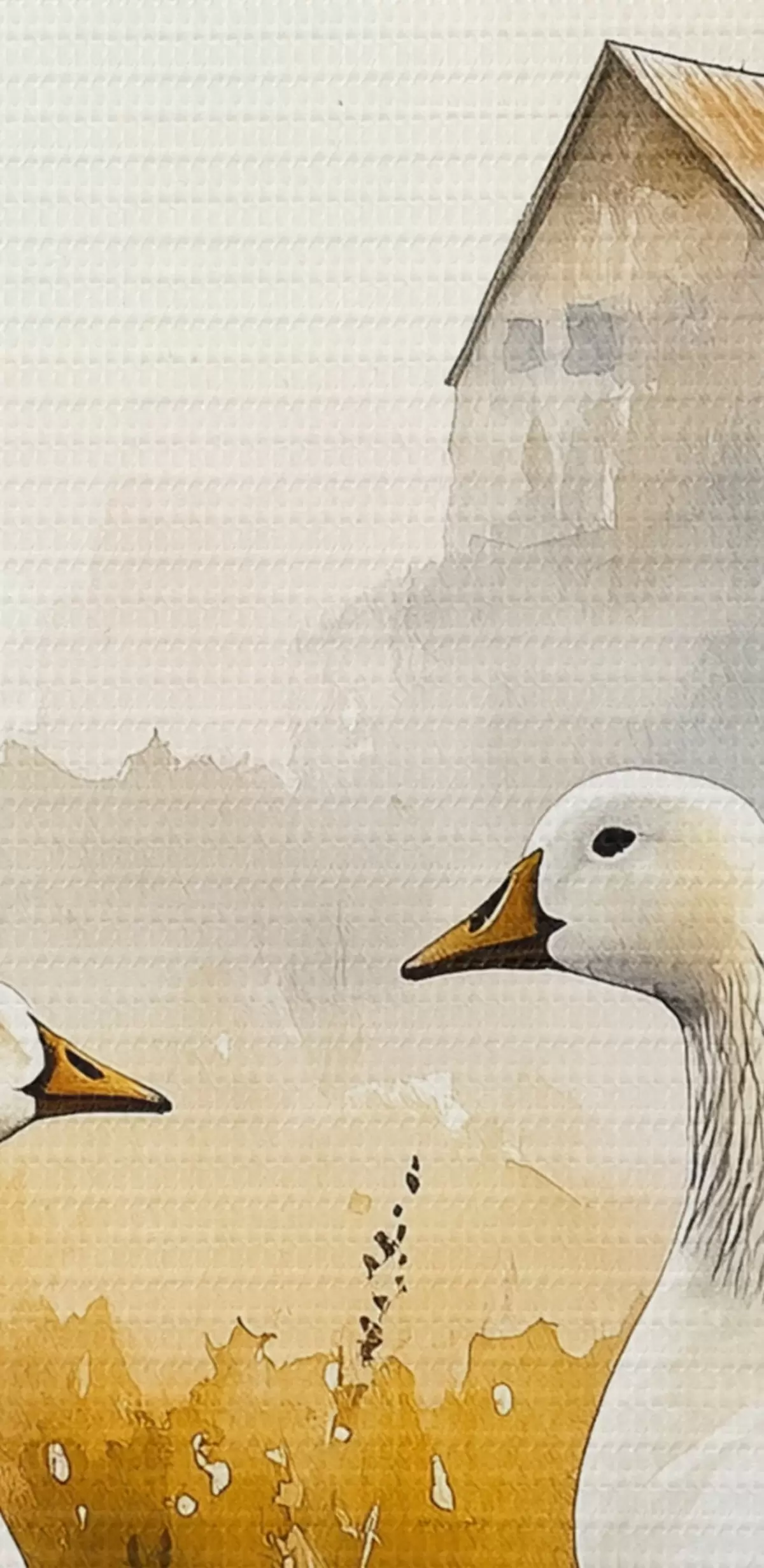 Vászonkép Akvarell stílusú libák a mezőn, falu, rusztikus, akvarell Nr s44024