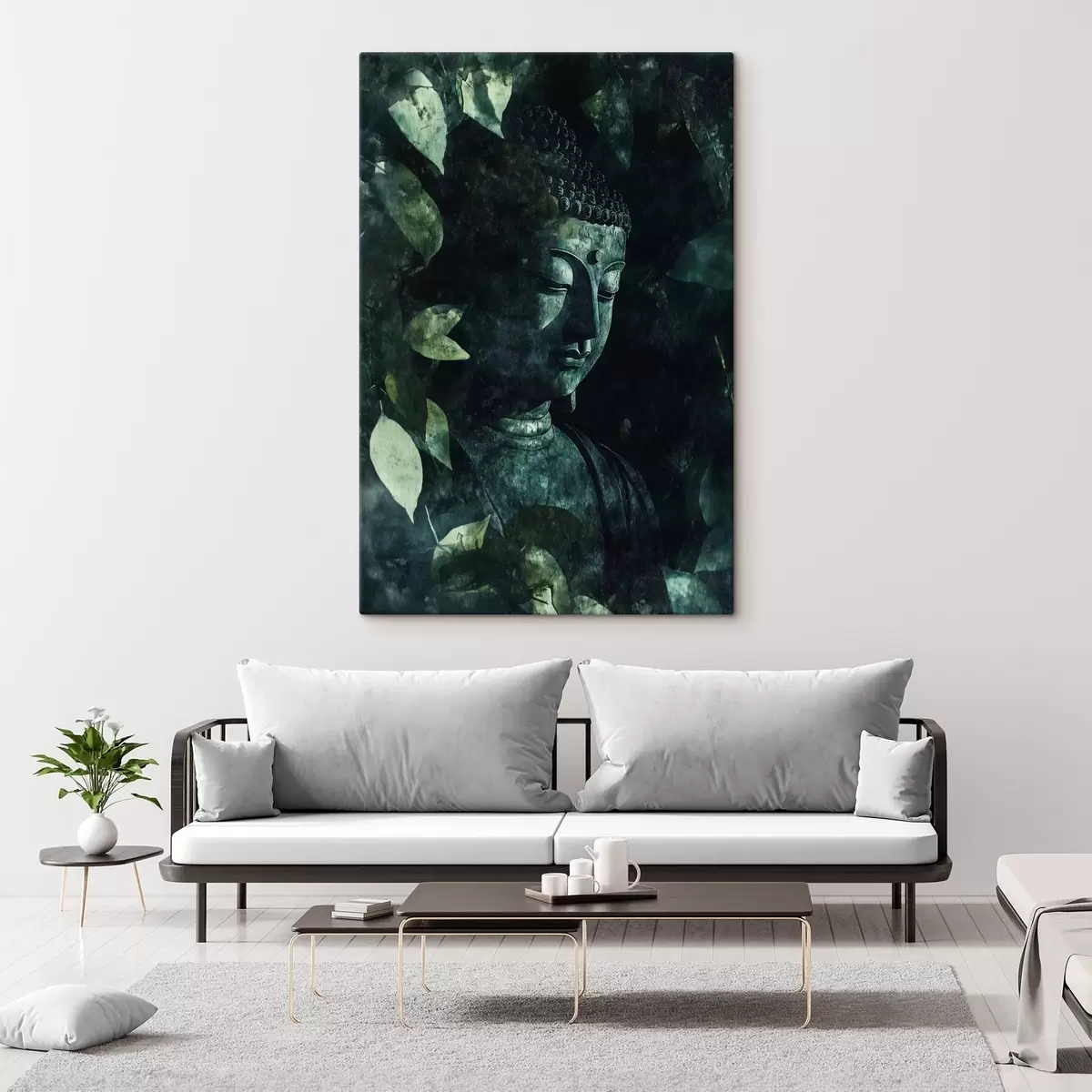 Vászonkép Meditáló Buddha a zöld levelekben, spirituális Nr s44029