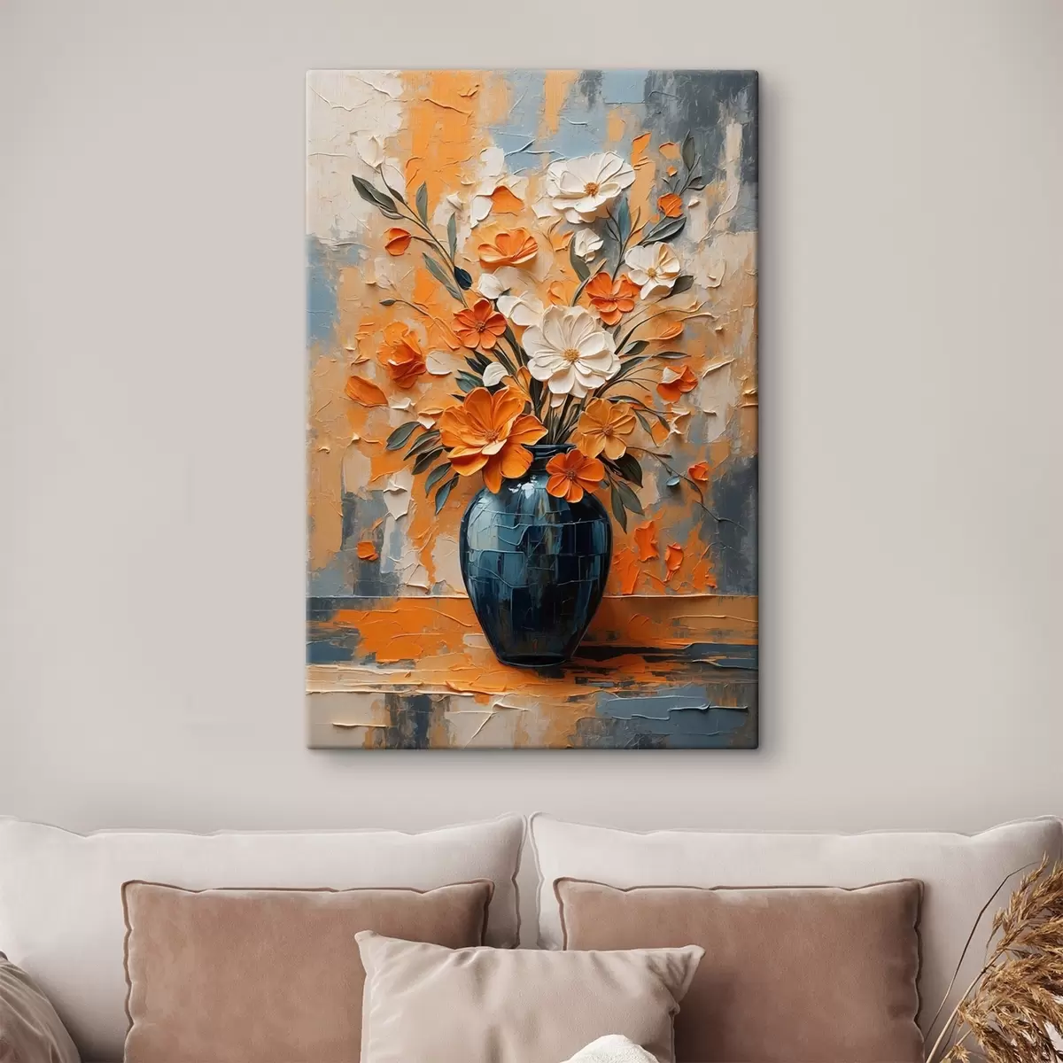Vászonkép Fehér és narancssárga virágok vázában olajfestmény stílusban Nr s44059