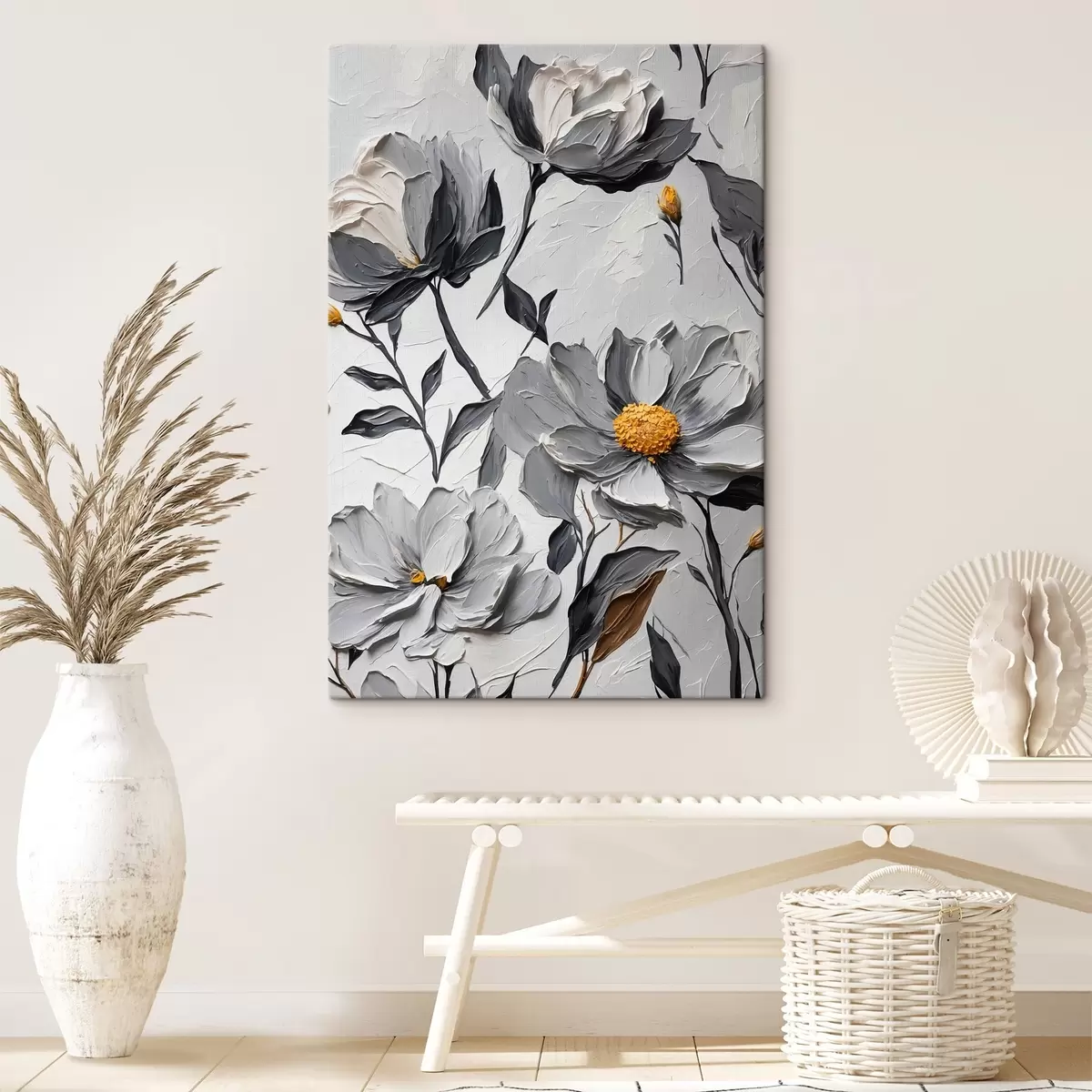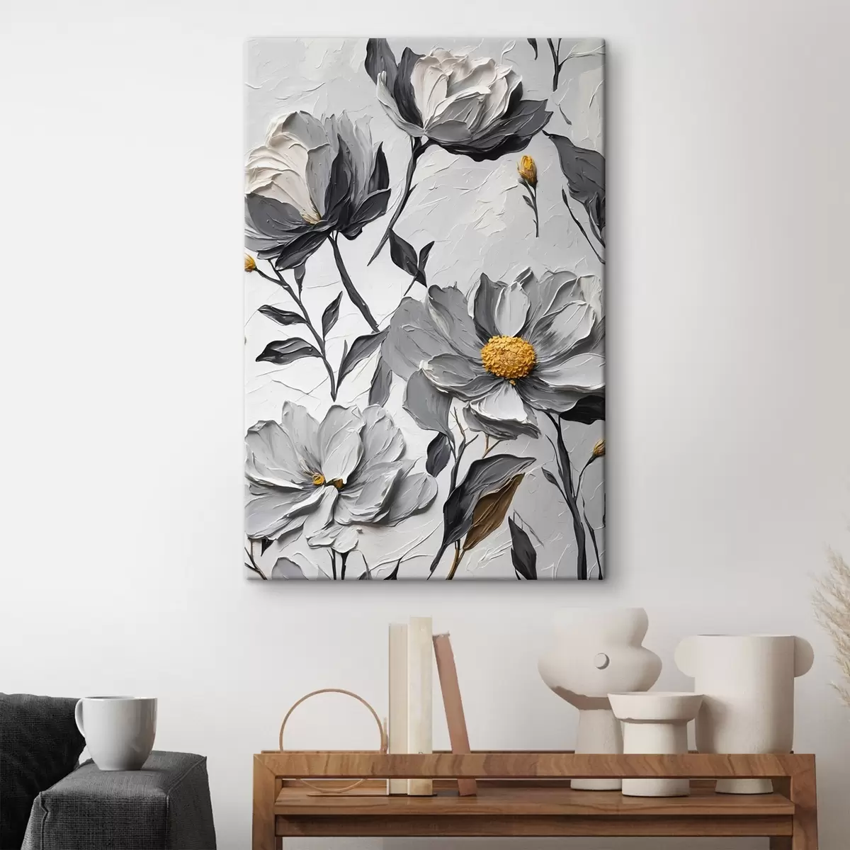 Vászonkép Szürke virágok szürke háttéren olajfestmény stílusban Nr s44080