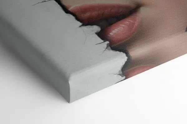 Vászonkép Lány arca fehér fal mögött Nr s44083