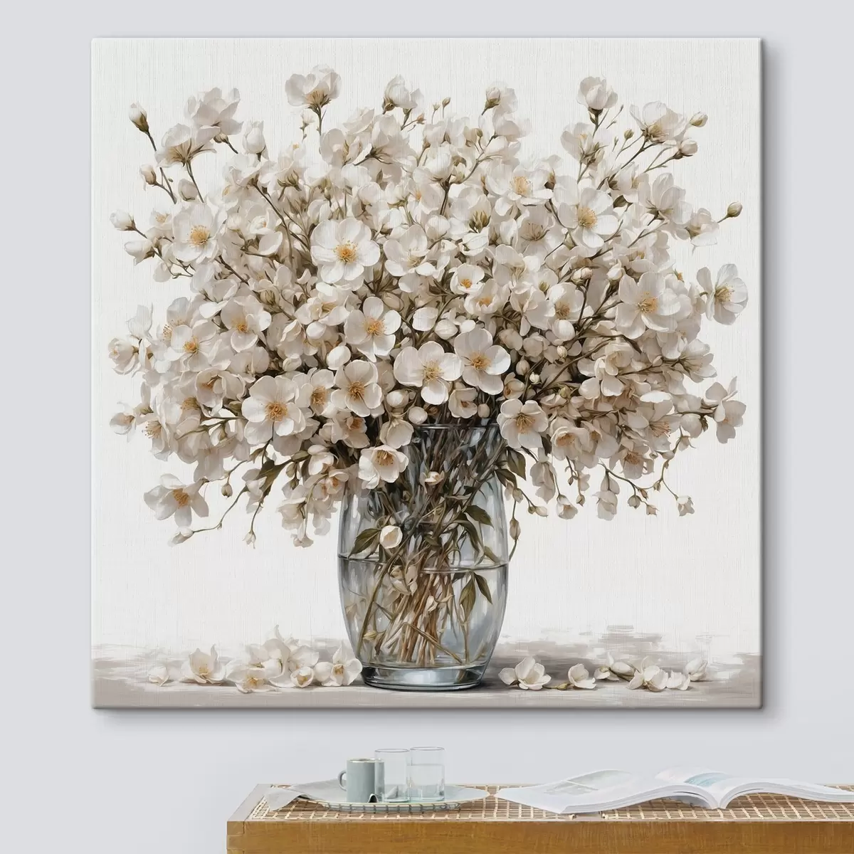 Vászonkép Fehér virágok átlátszó vázában Nr s44092