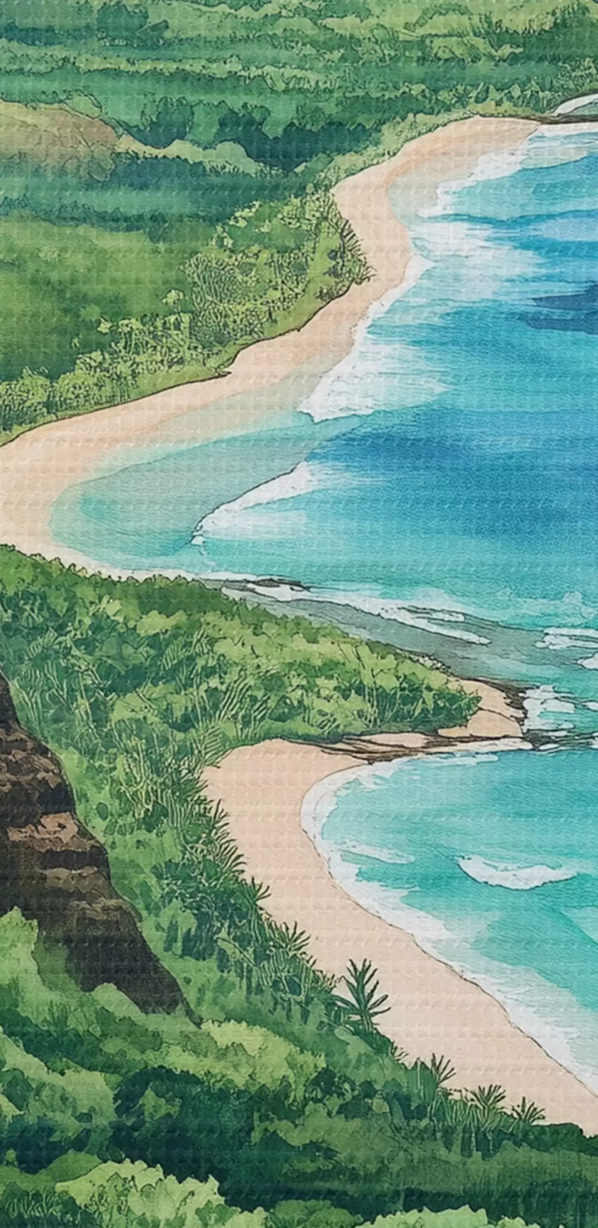 Vászonkép Zöld hegyek, Hawaii, óceán, trópusi, akvarell stílusban Nr s44143