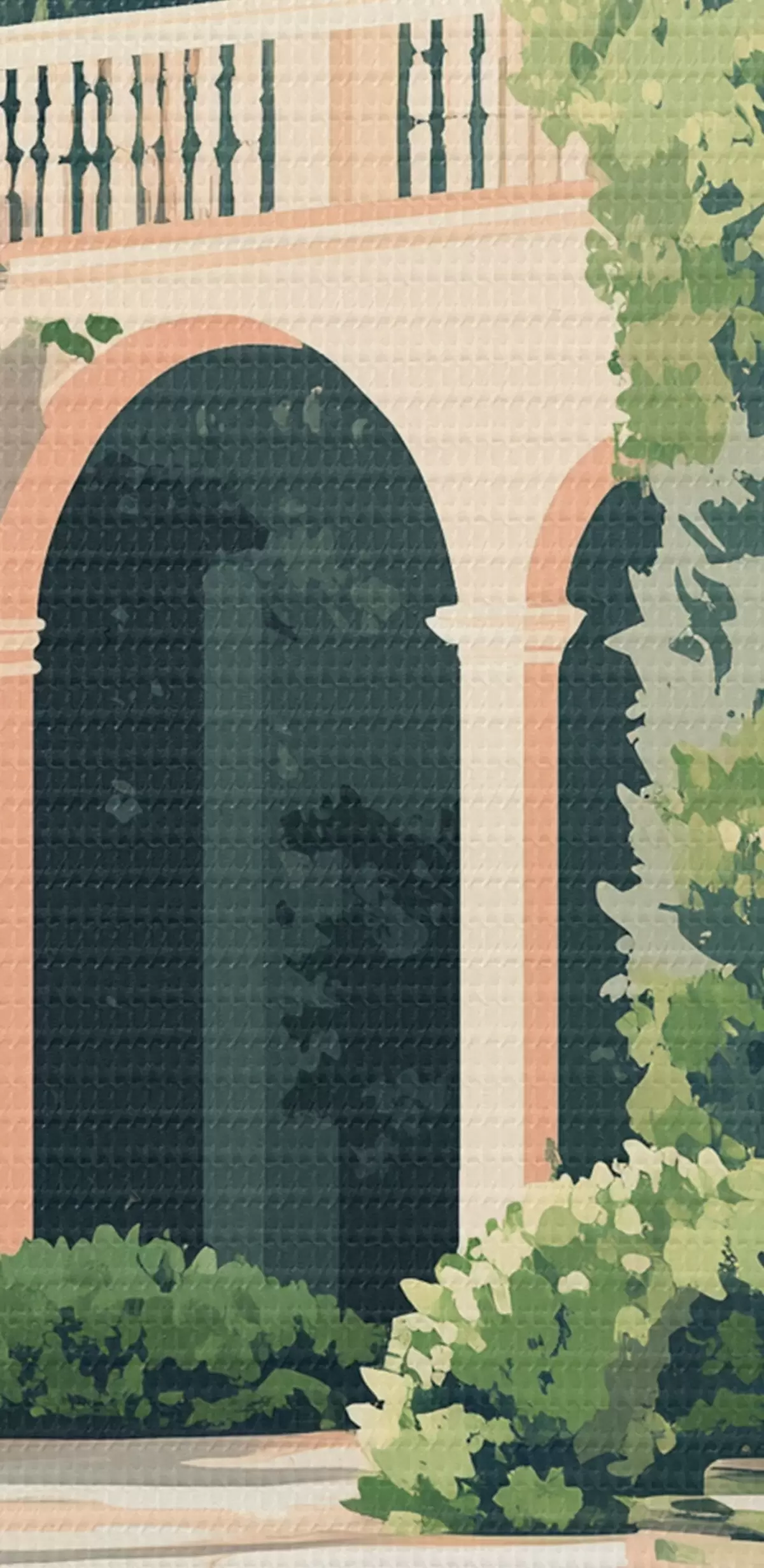 Vászonkép Mediterrán építészet, trópusi természet, lapos stílus, villa kerttel Nr s44150