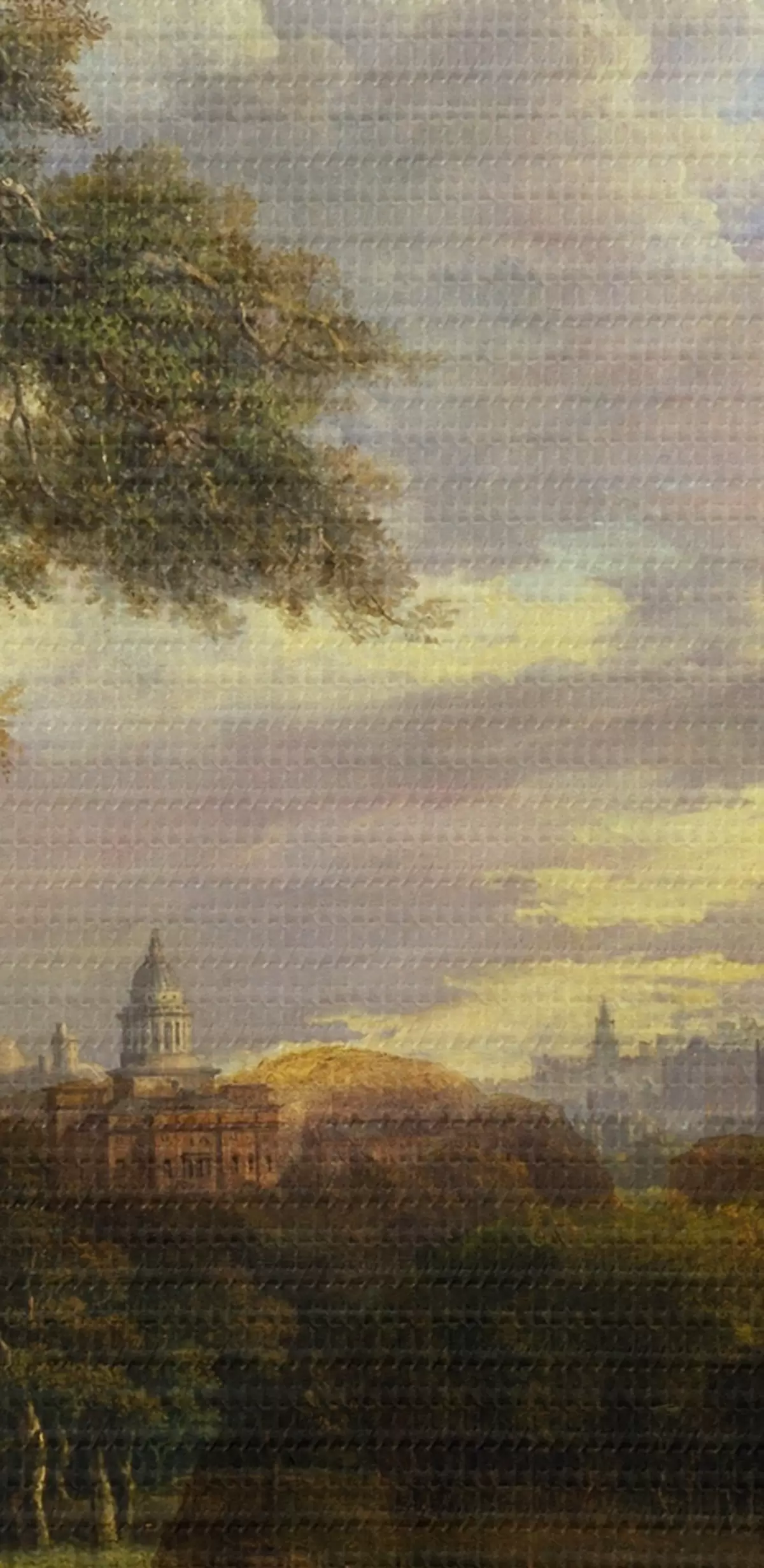 Ahhoz, hogy a vásznat a feszítőrúdra feszítsük anélkül, hogy a kép megsérülne, tükrözött képet használunk.