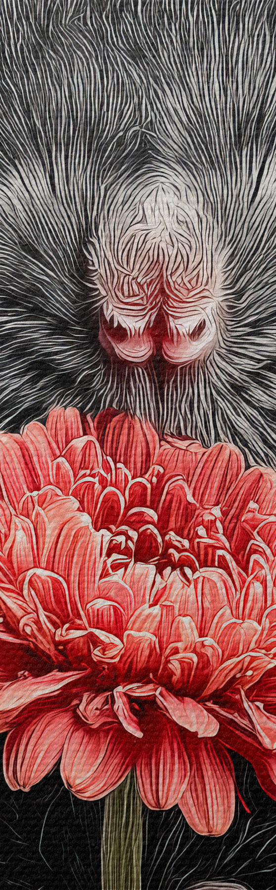 Vászonkép Kíváncsi patkány egy rózsaszín gerberával minimalista stílusban Nr s44241