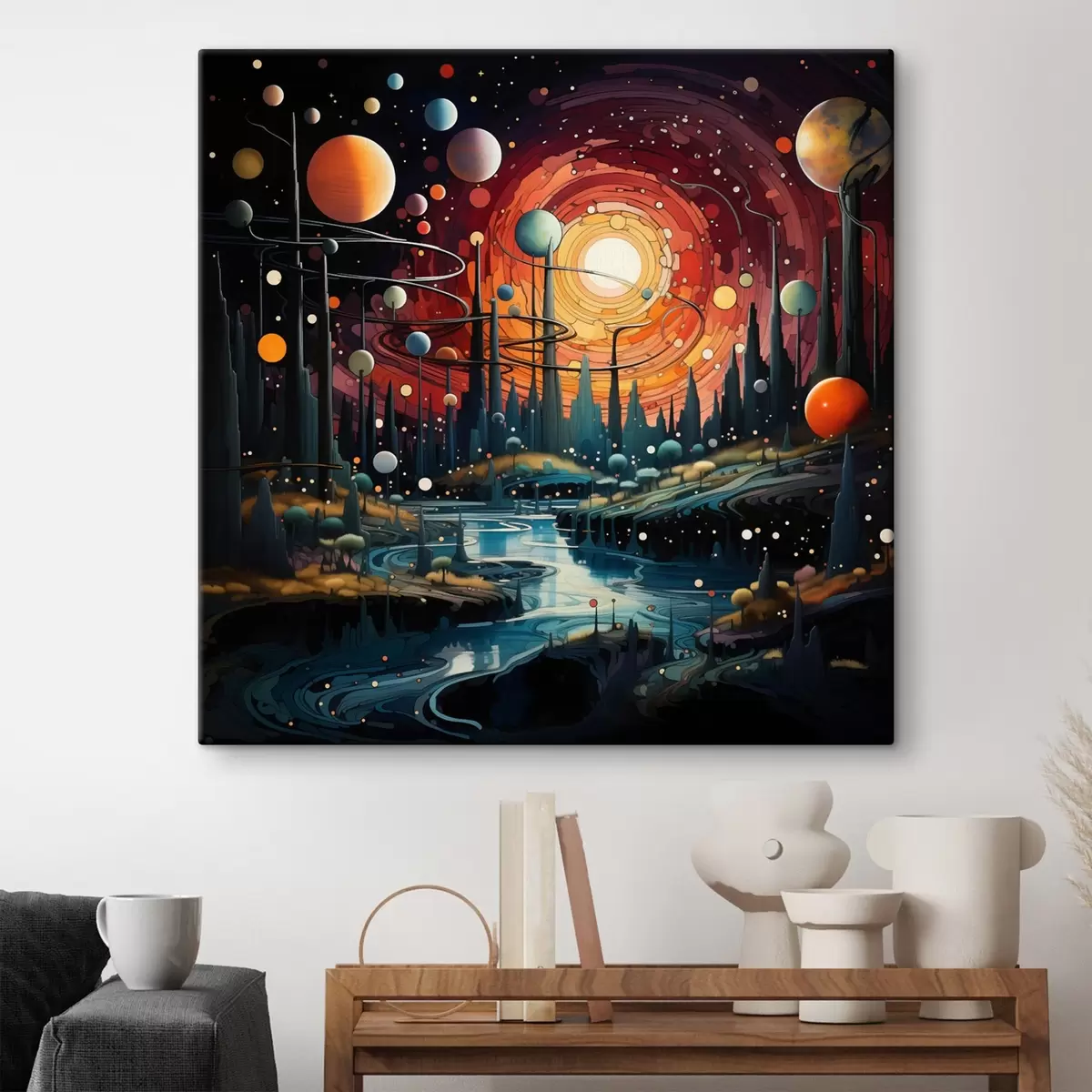 Vászonkép Fényes és fantasztikus táj egy idegen világ bolygókkal és egy folyóval Nr s44249