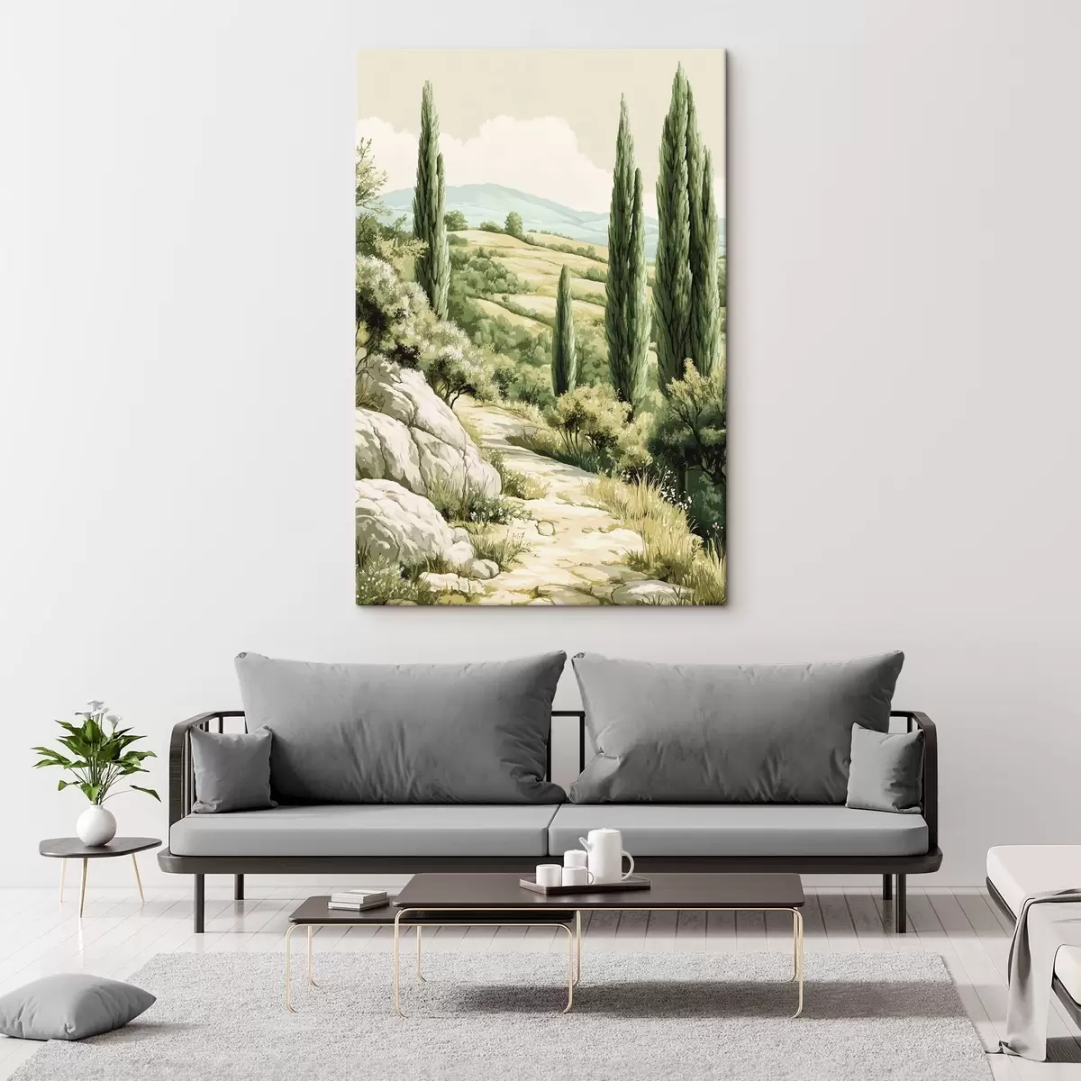 Vászonkép Nyári tájak ciprusokkal és zöld dombokkal, rusztikus stílusban Nr s44308