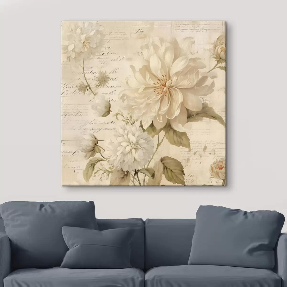 Vászonkép Fehér dáliák a múlt lapjain Nr s44342