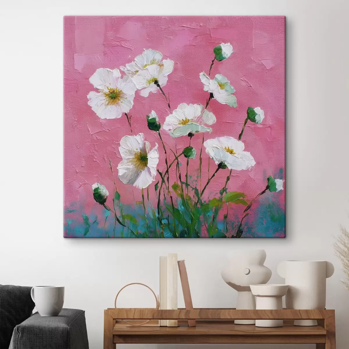 Vászonkép Fehér virágok rózsaszín alapon Nr s44360