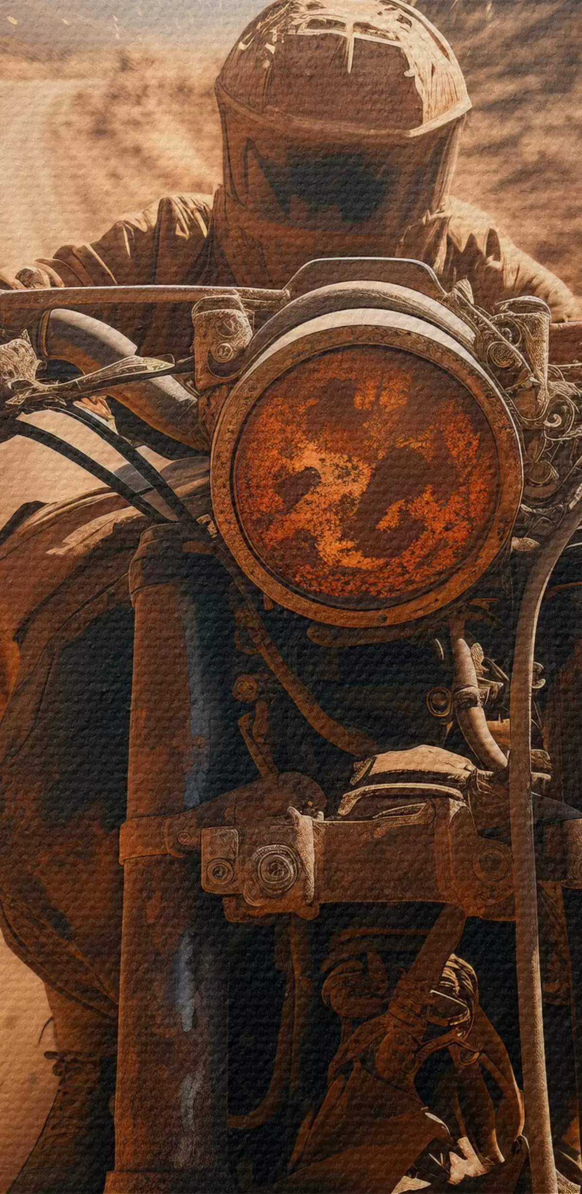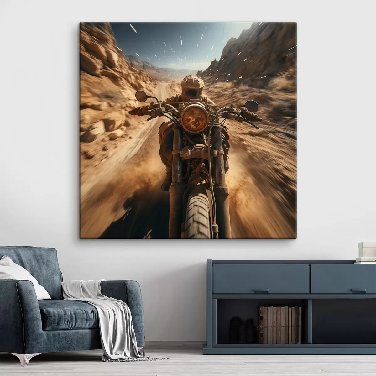 Vászonkép Motoros száguldozik egy sivatagi úton Nr s44361