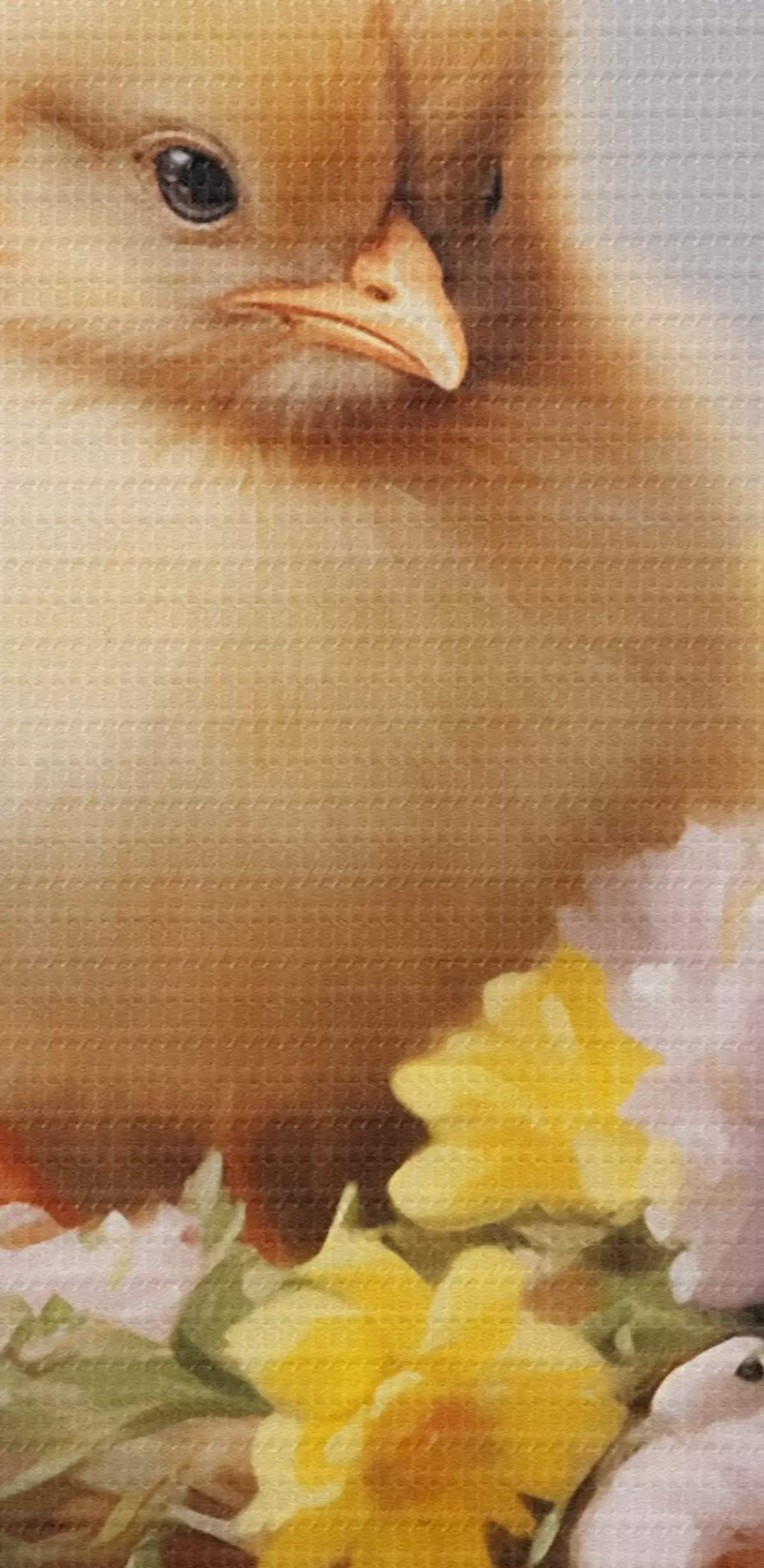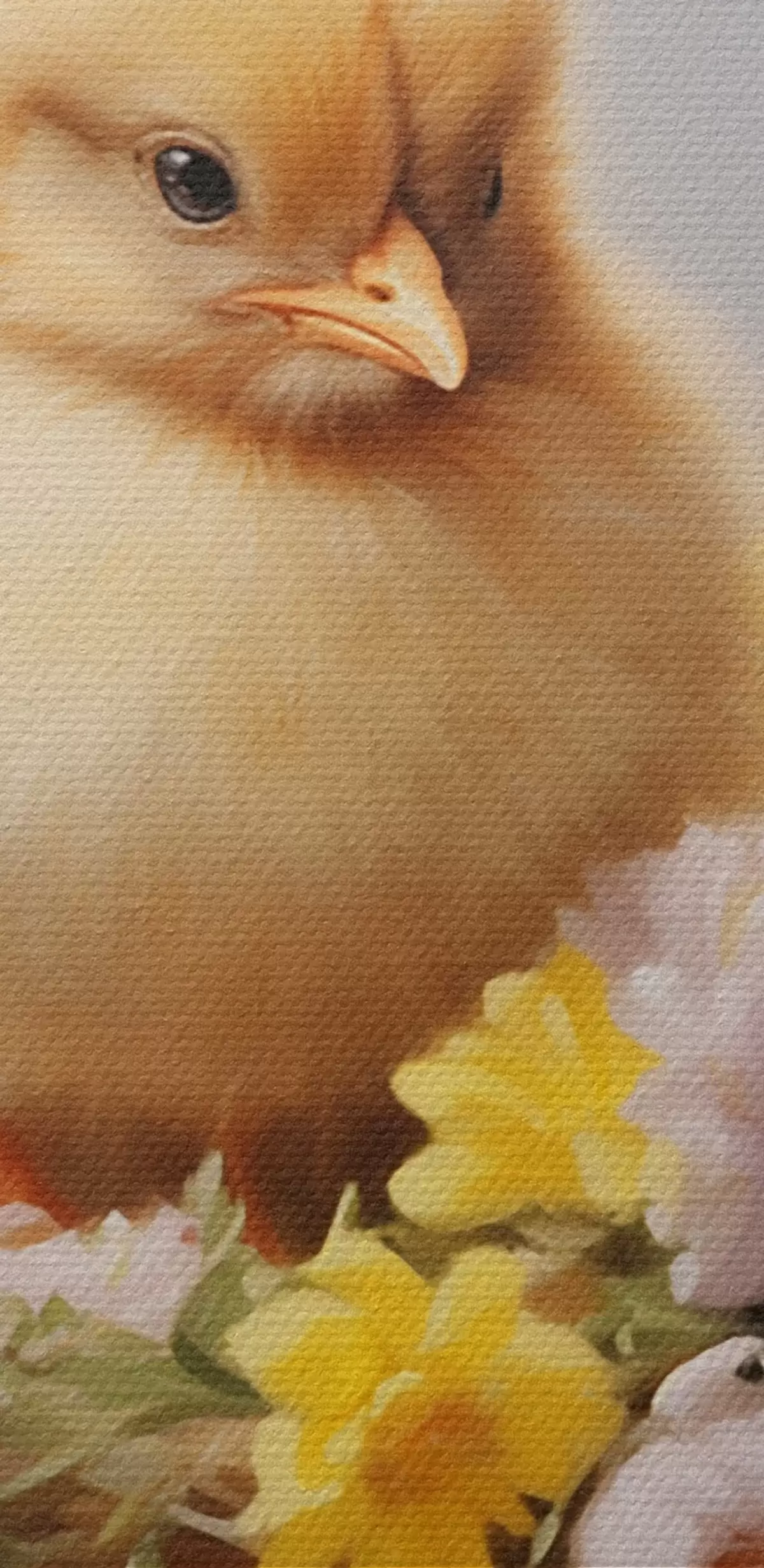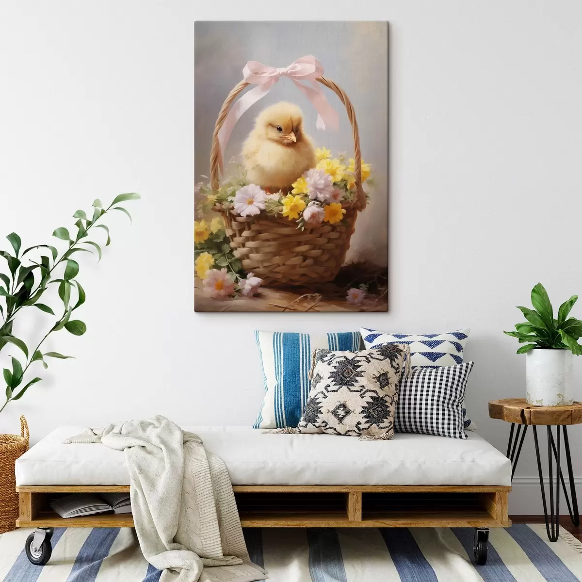 Vászonkép Sárga csibe egy kosárban vadvirágokkal Nr s44384