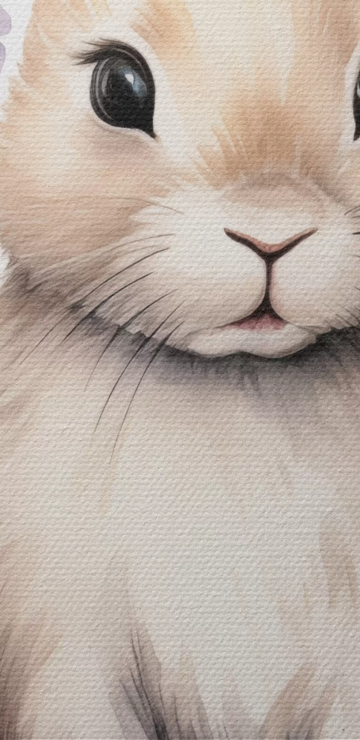 Vászonkép Aranyos nyuszi akvarell stílusban virágokkal és pillangókkal Nr s44388