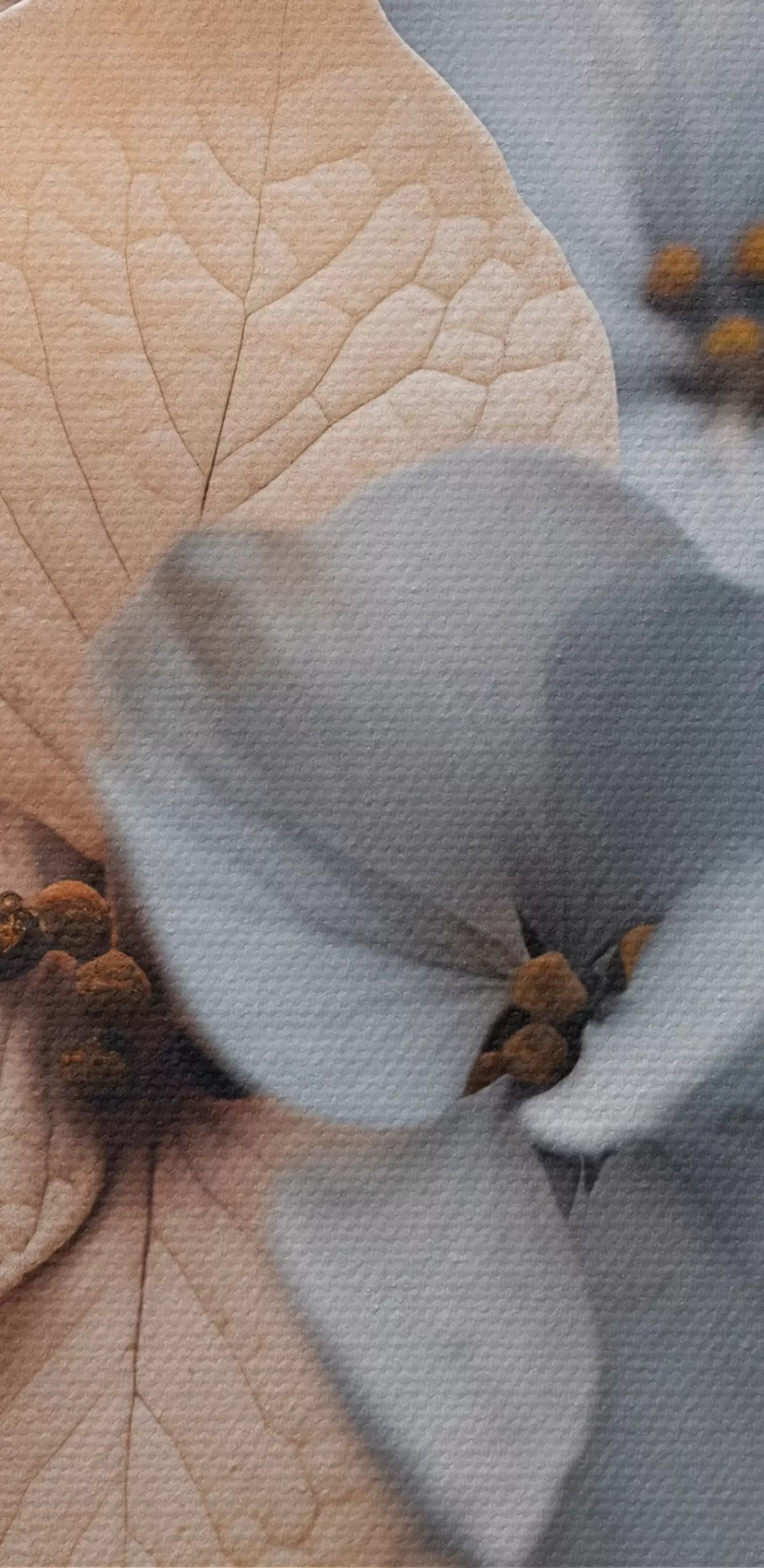 Vászonkép Hortenzia virágok, világoskék és bézs szirmok, részletes textúrákkal, elegáns virágkötészet Nr s44394