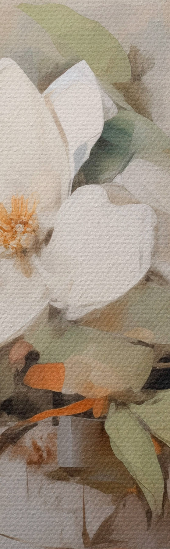 Vászonkép Fehér magnólia virágok zöld levelekkel egy ágon, lágy ecsetvonásokkal, tompa színekkel Nr s44404