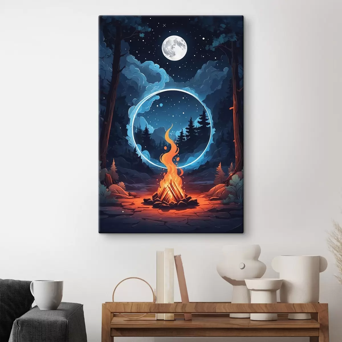 Vászonkép Máglya az éjszakai erdőben Nr s44436