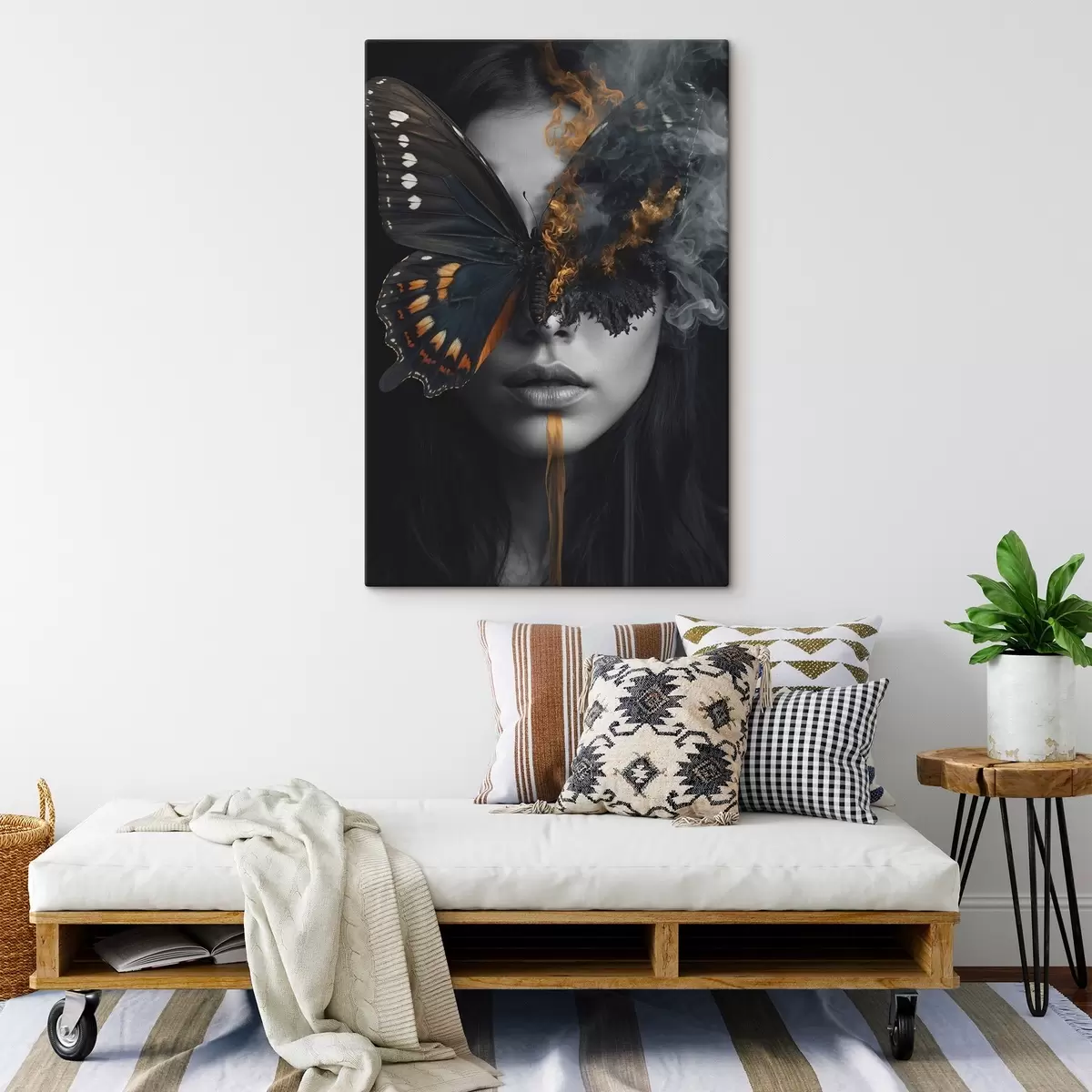Vászonkép Égő pillangó a lány arcán Nr s44468