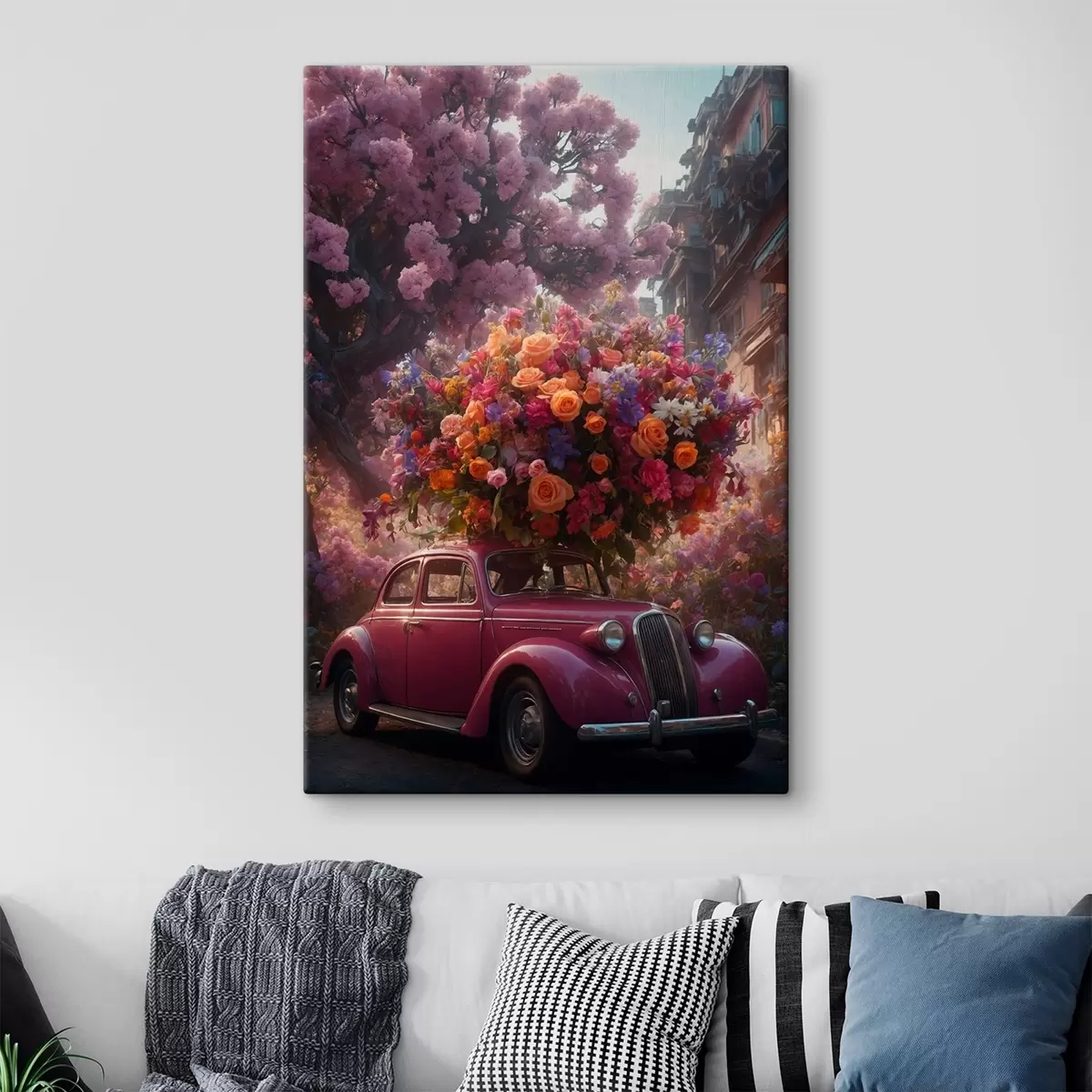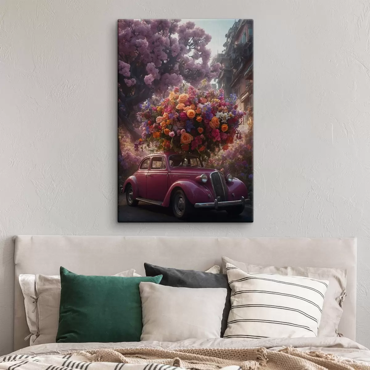 Vászonkép Retro autó és egy hatalmas csokor virág Nr s44471