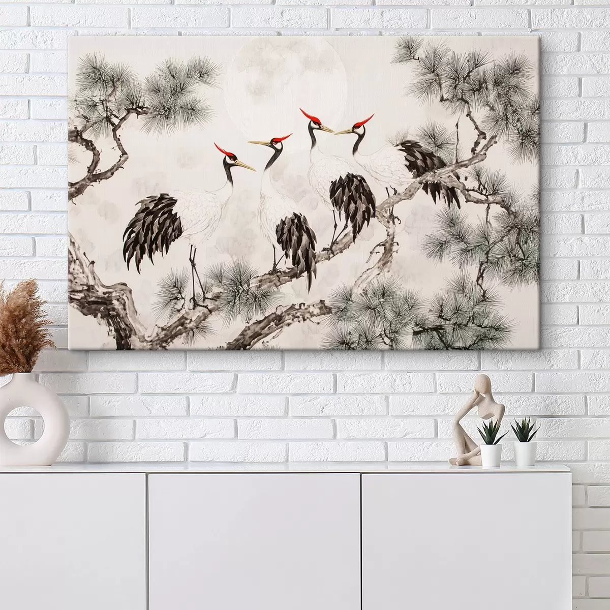 Vászonkép Kínai művészet darvakkal és fenyőfákkal, keleti stílus, természet Nr s44503