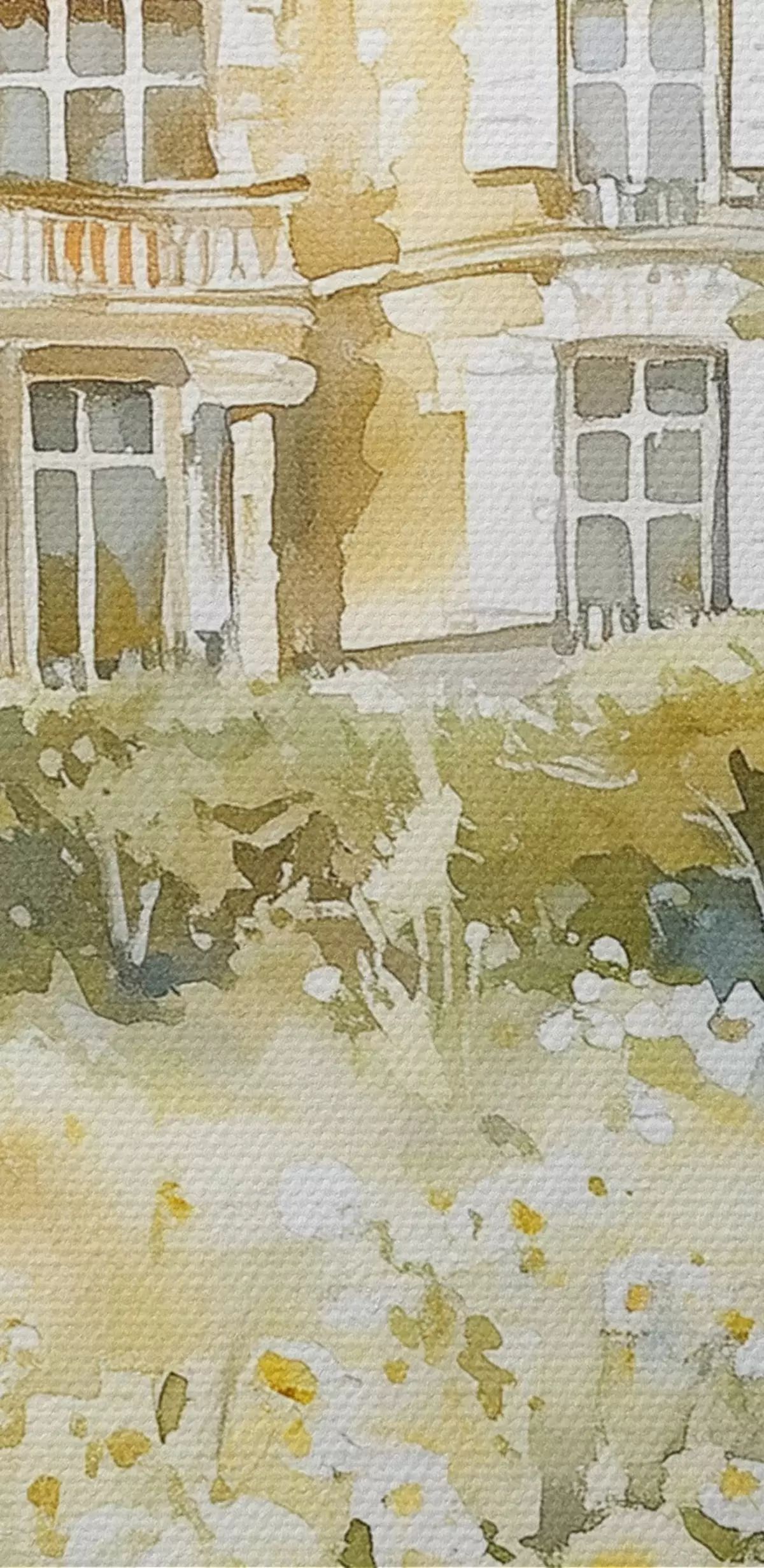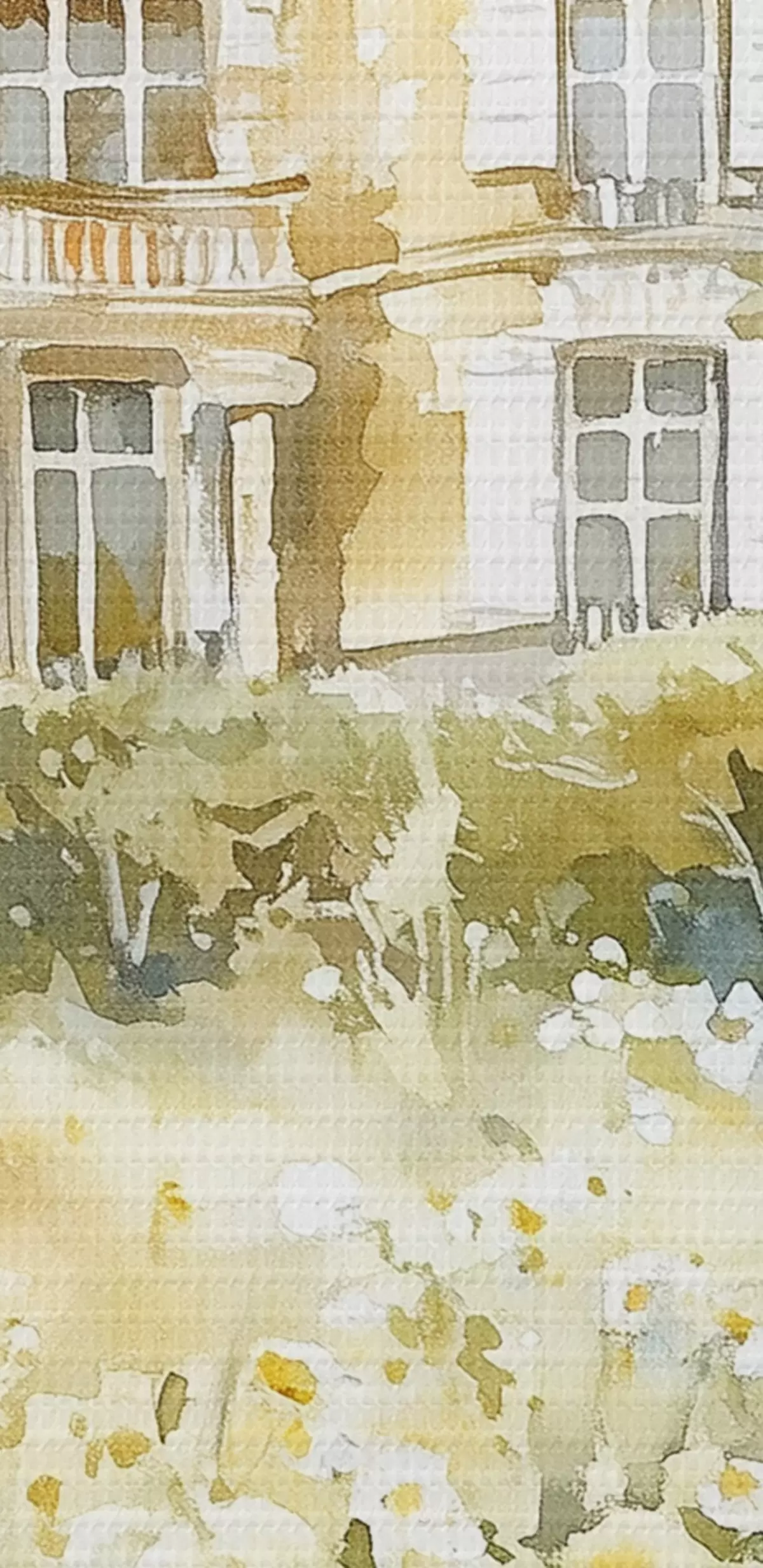 Vászonkép Gyönyörű kastély zölddel és fehér virágokkal, akvarell stílusban Nr s44506
