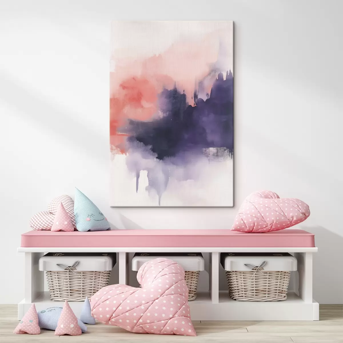 Vászonkép Akril stílusú absztrakció, ecsetvonások, lila és rózsaszín Nr s44507