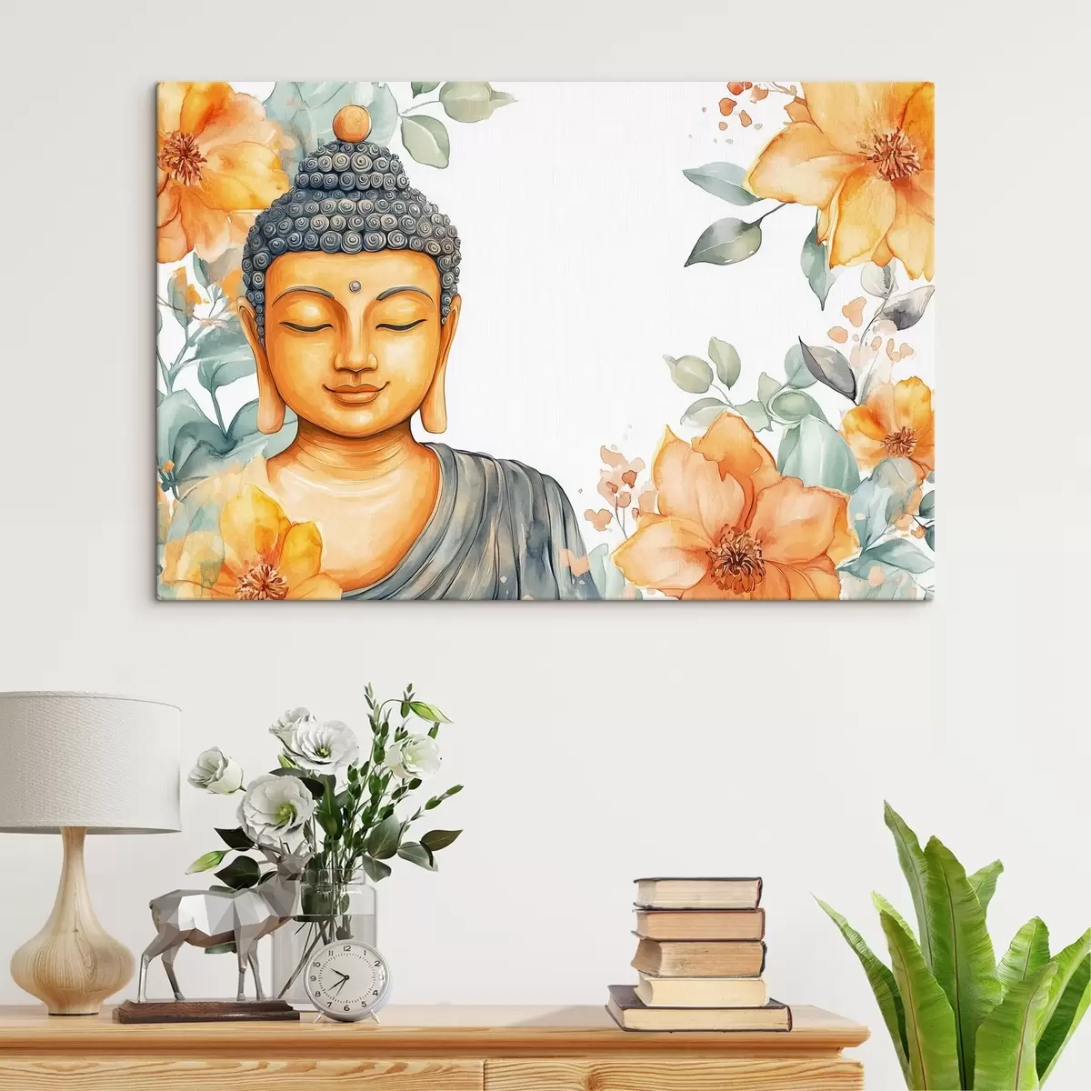 Vászonkép Buddha narancssárga virágokkal körülvéve, akvarell stílusban Nr s44508
