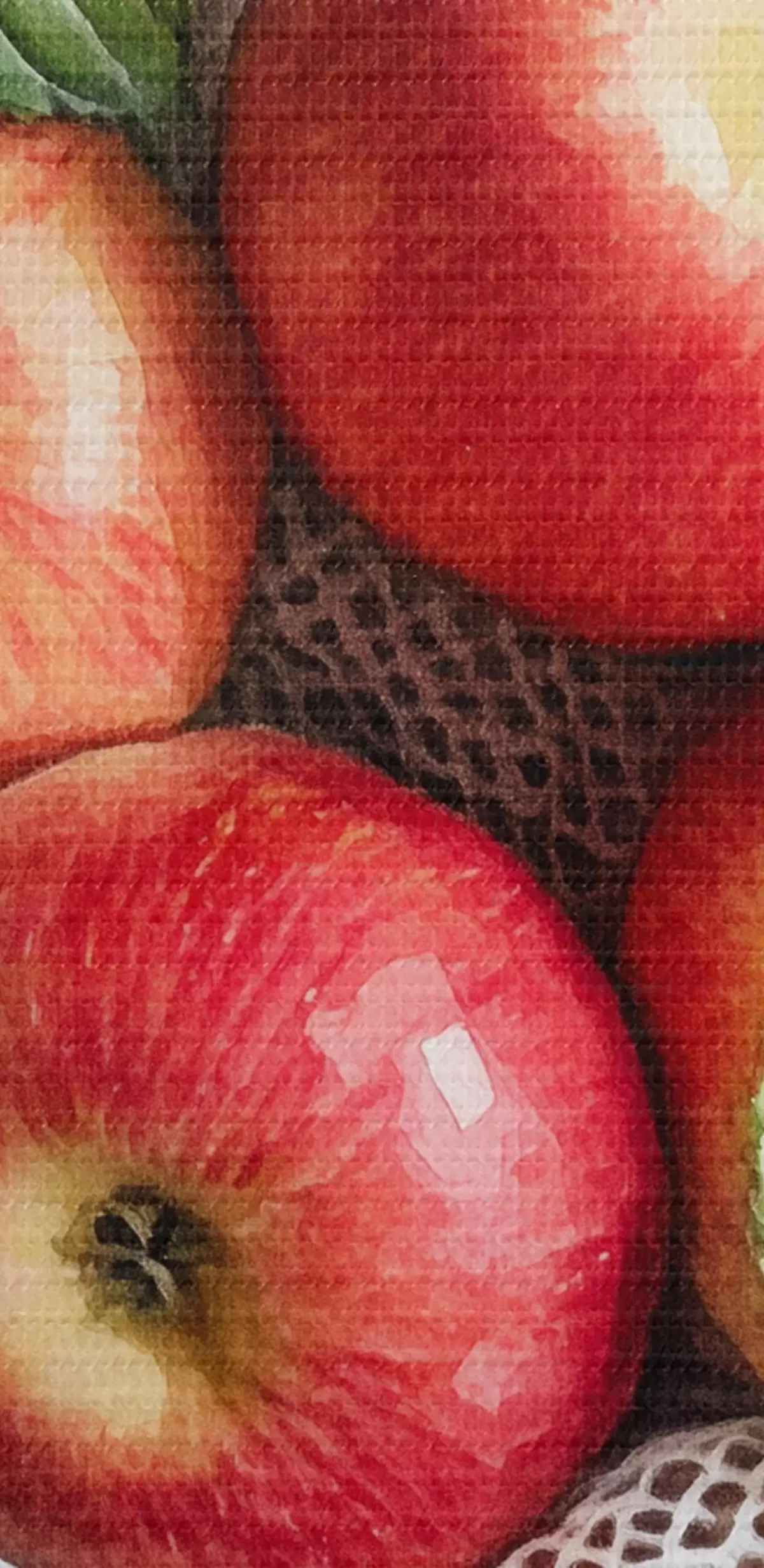 Vászonkép Piros alma a vászonzacskóban mentalevéllel, rusztikus stílusban, gyümölcsökkel Nr s44609