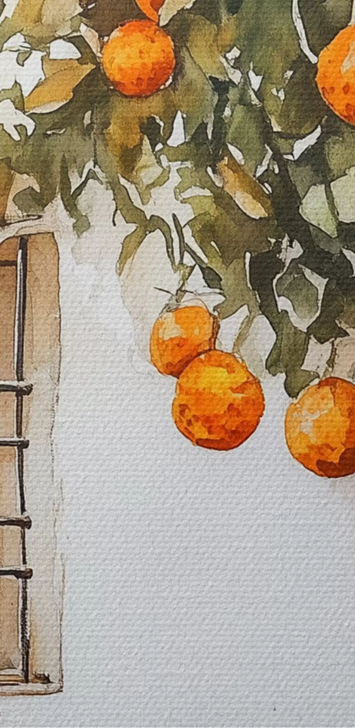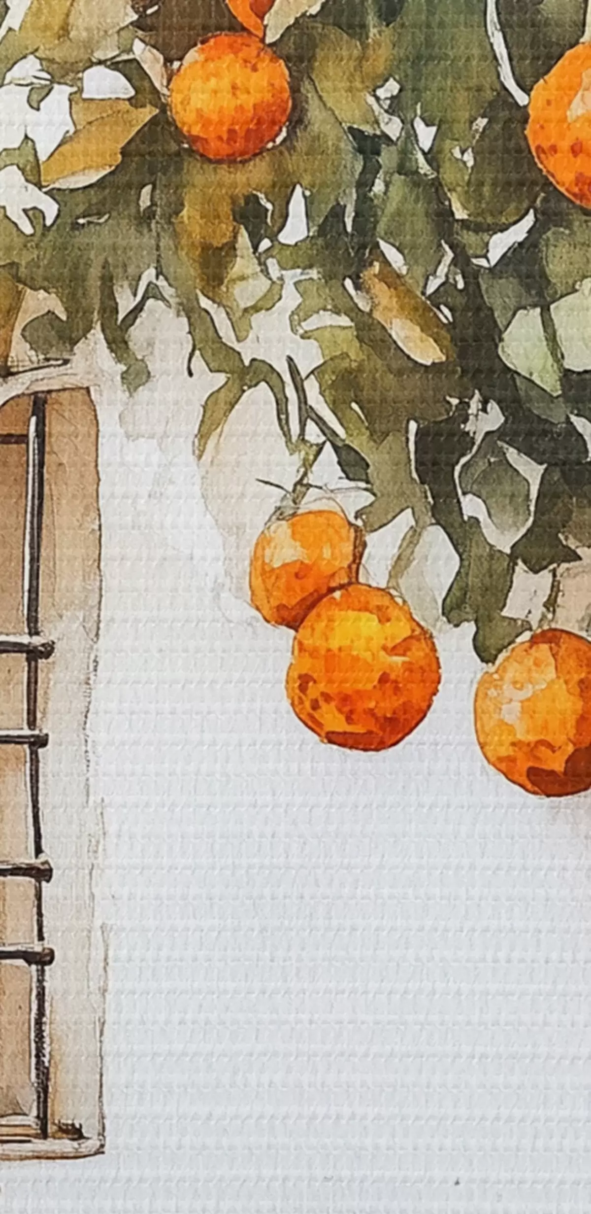Vászonkép Mediterrán fehér ház narancsfával és kerékpárral Nr s44610