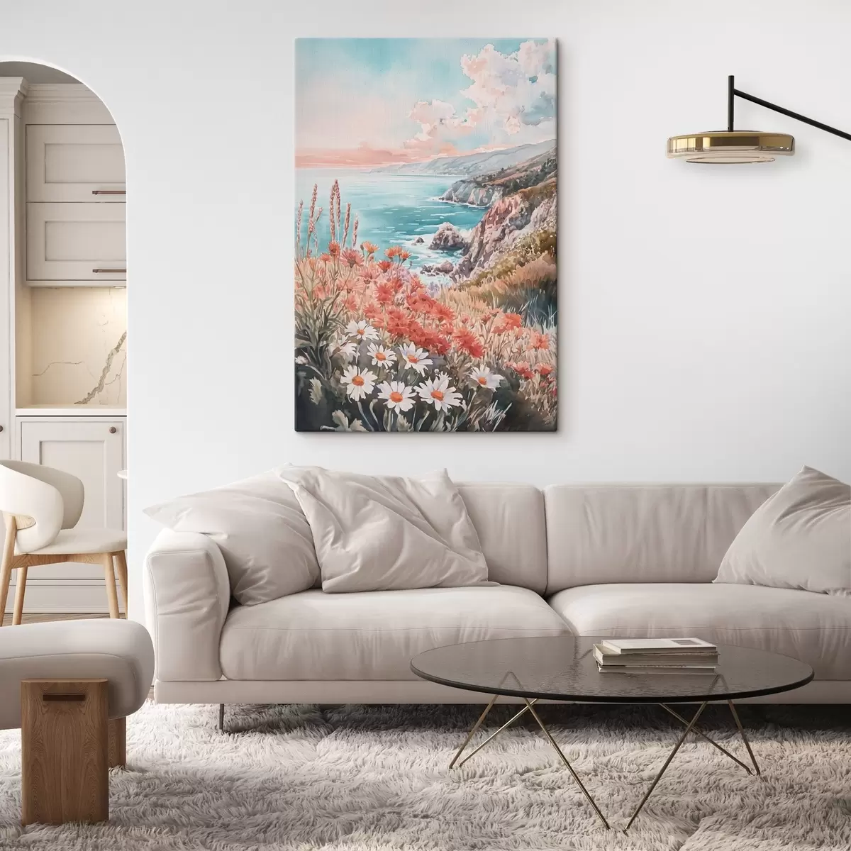 Vászonkép Portugália óceánpartján a naplementében, rét virágai Nr s44612
