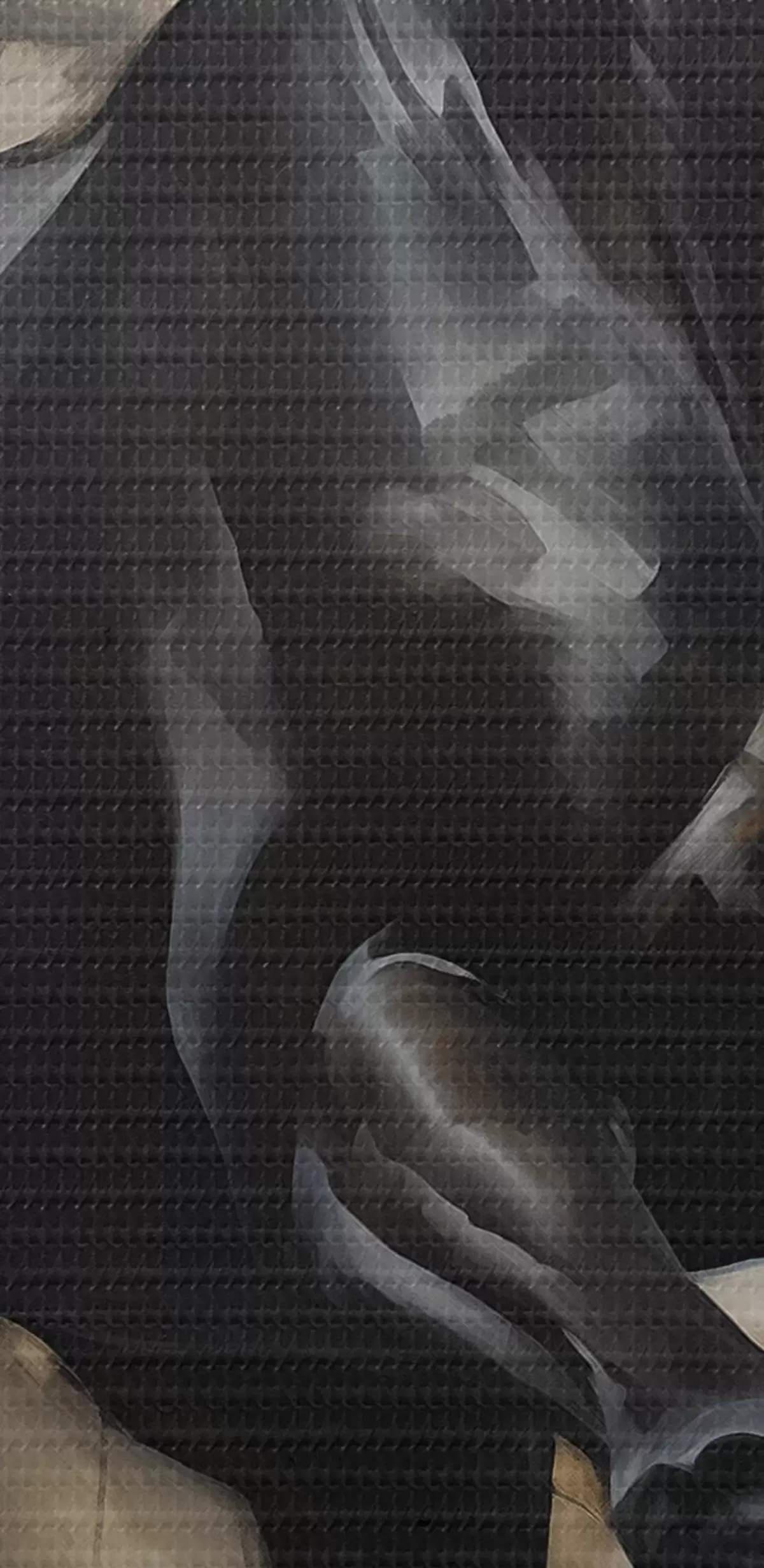 Ahhoz, hogy a vásznat a feszítőrúdra feszítsük anélkül, hogy a kép megsérülne, tükrözött képet használunk.