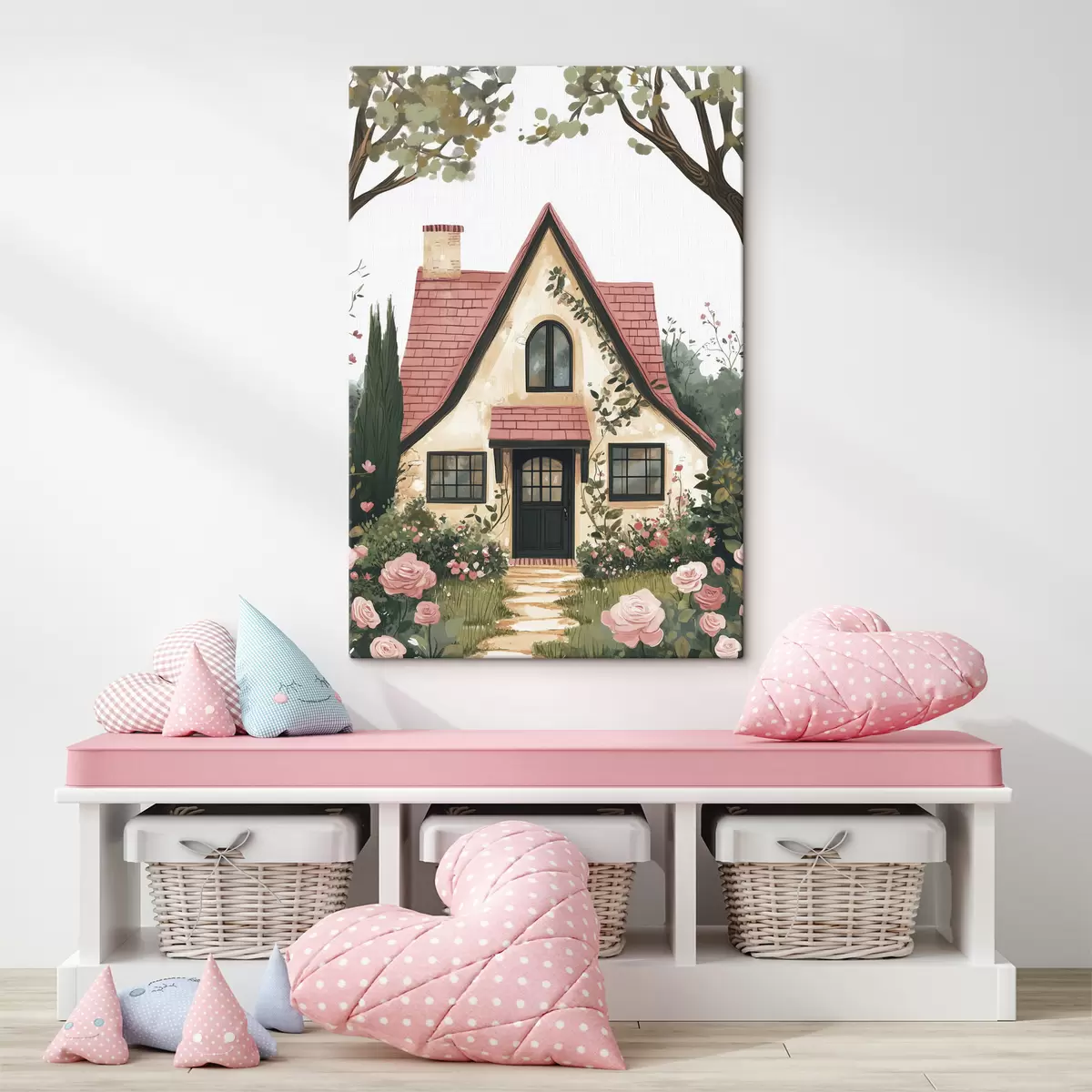 Vászonkép Egy mesebeli ház az erdőben, rózsák, pasztell stílusban Nr s44718