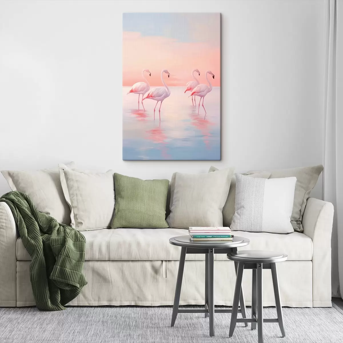Vászonkép Flamingók a sekély vízben naplementekor Nr s44732