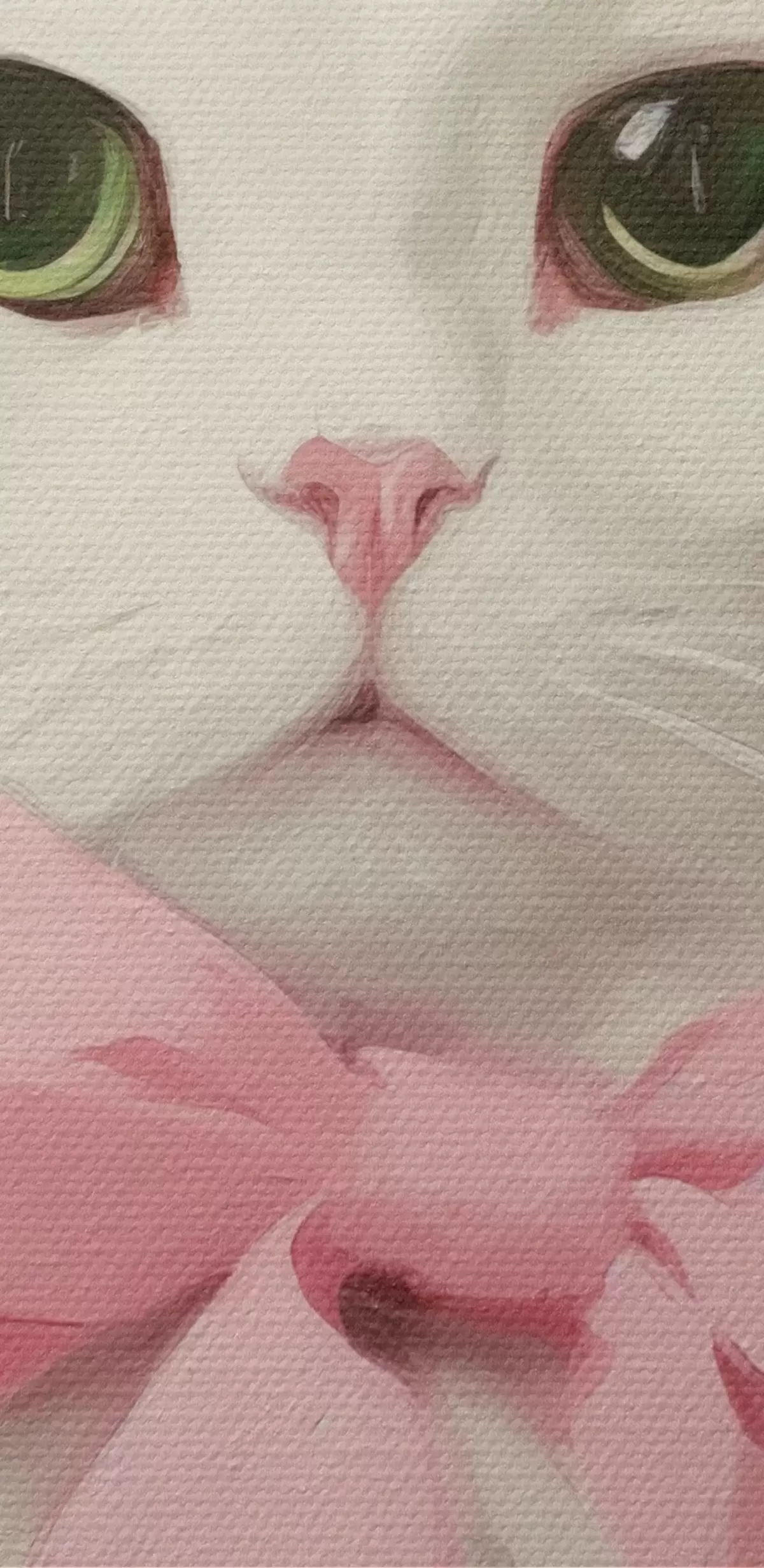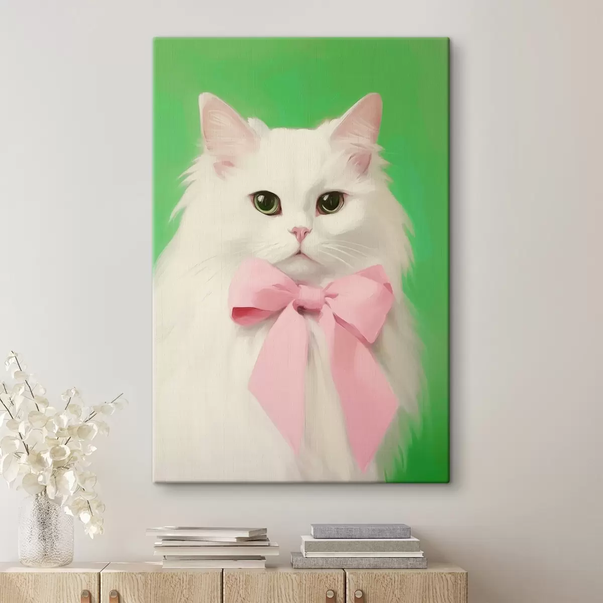 Vászonkép Fehér macska rózsaszín masnival Nr s44739