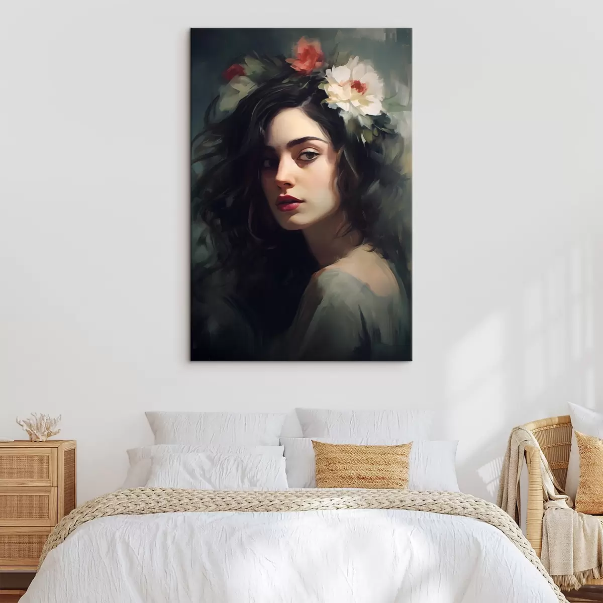 Vászonkép Sötét hajú nő virágkoronával Nr s44762