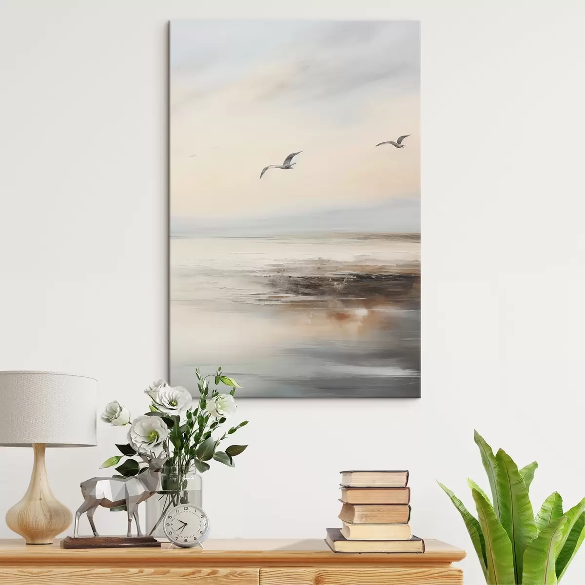 Vászonkép Pasztell tájkép repülő sirályokkal Nr s44763