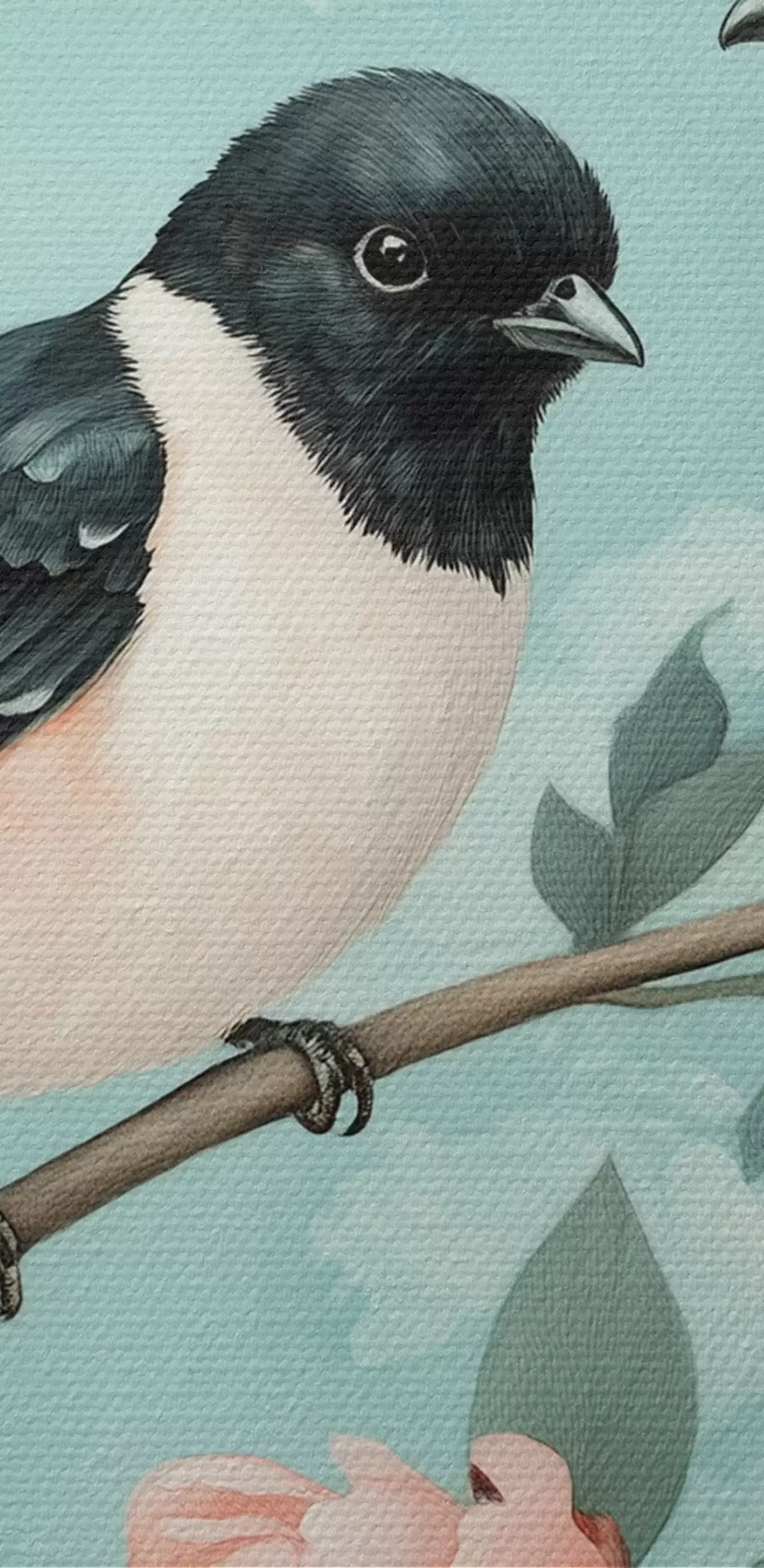 Vászonkép Két madár az ágon bazsarózsával Nr s44786