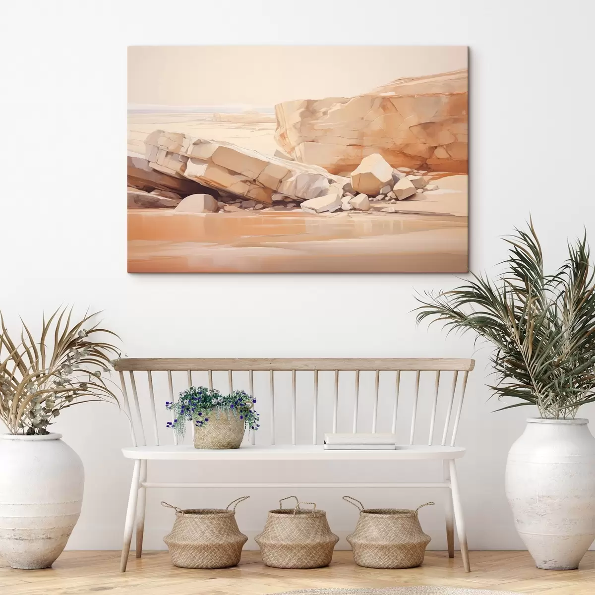 Vászonkép Minimalista sziklás tengerparti táj nagy világosbarna sziklákkal és tiszta vízzel Nr s44865