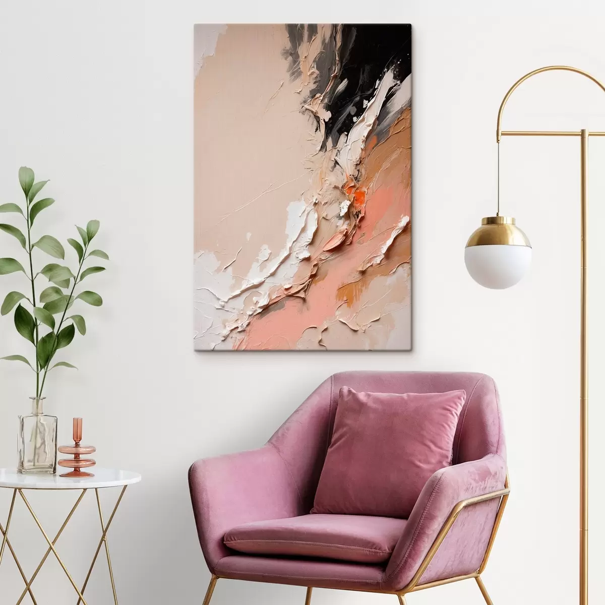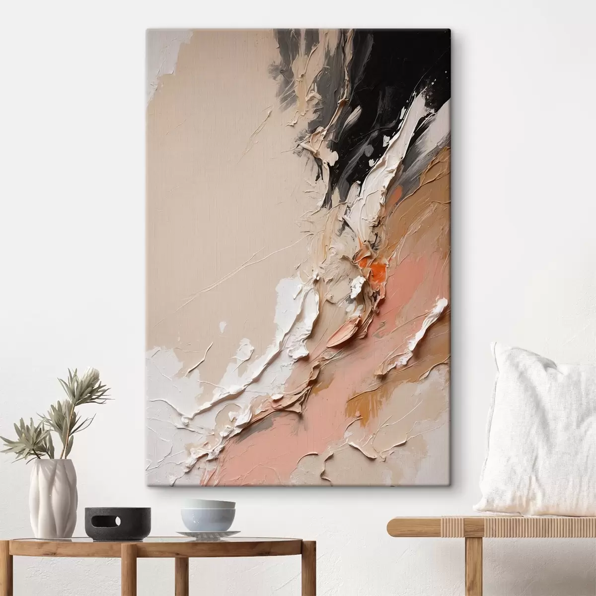 Vászonkép Bézs és fekete absztrakció rózsaszín és fehér akcentusokkal Nr s44875