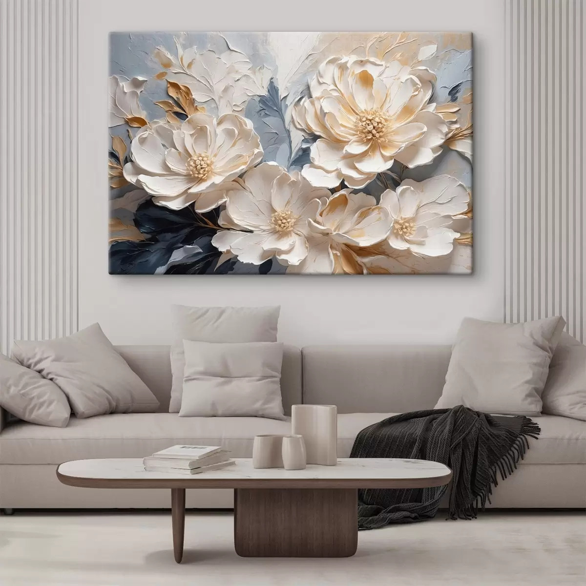 Vászonkép Volumetrikus krém bazsarózsa világoskék háttéren Nr s44880