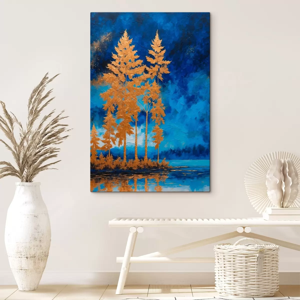 Vászonkép Fák az éjszakai égbolt kék tónusú hátterén Nr s44888