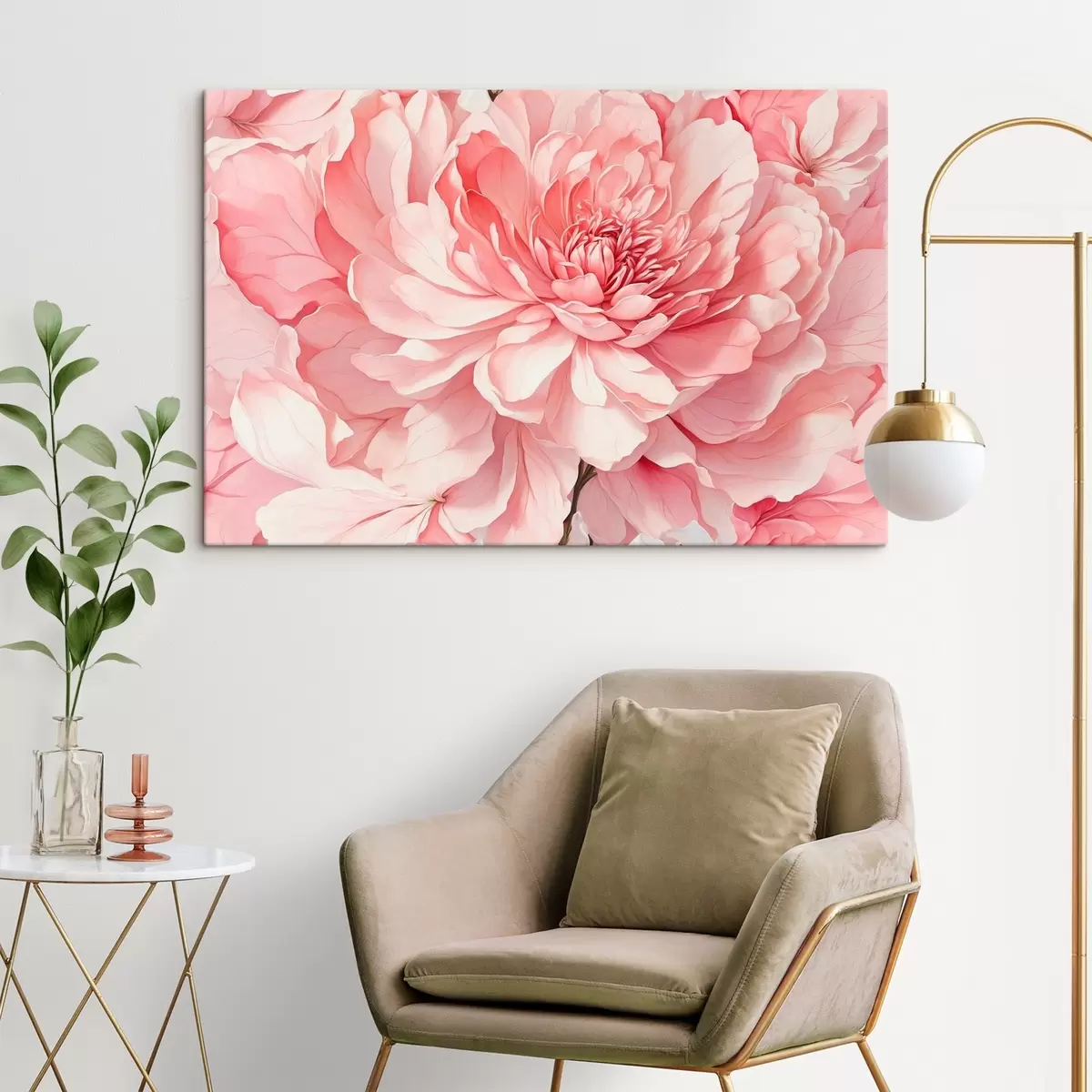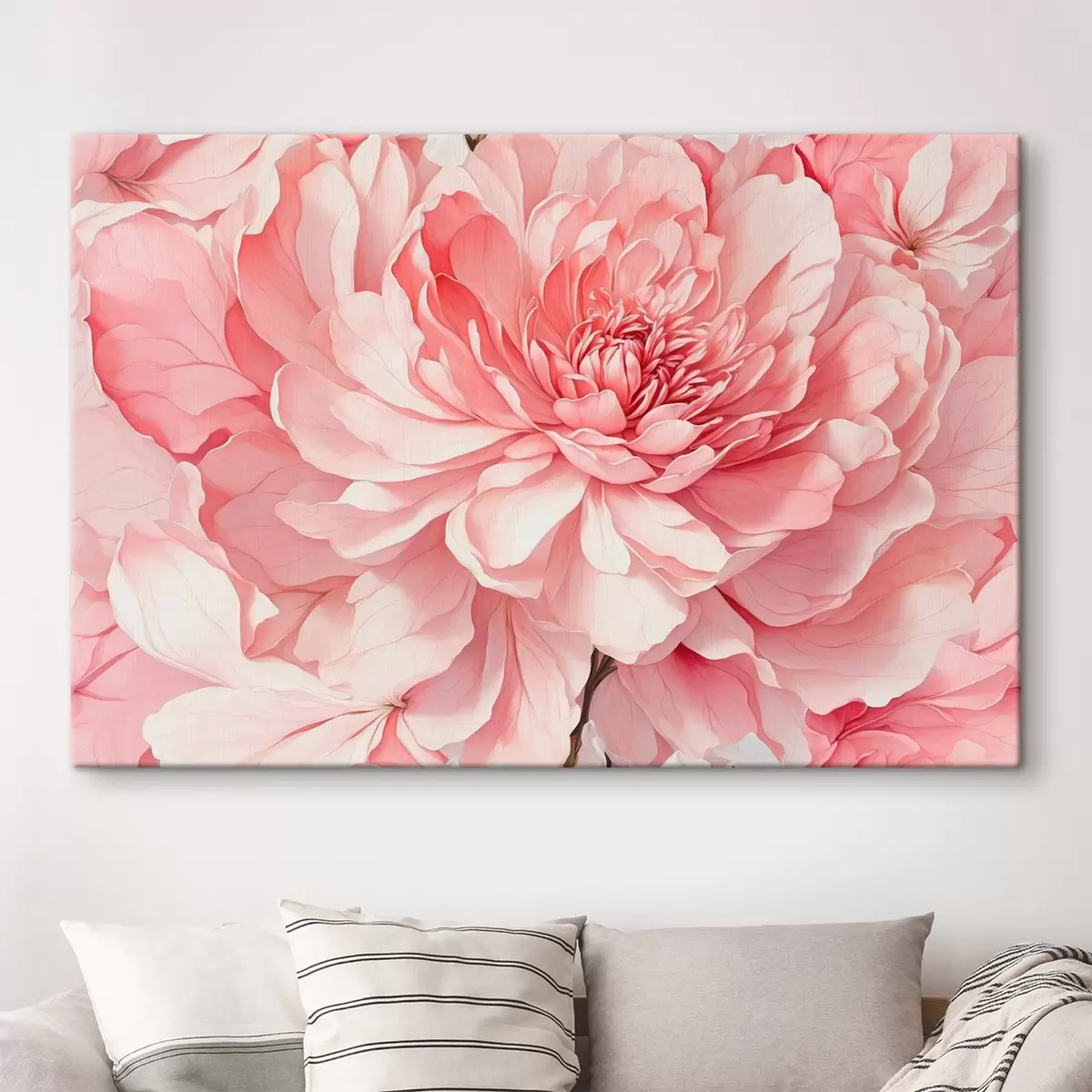 Vászonkép Rózsaszín bazsarózsa közelről, lágy megvilágítással Nr s44891
