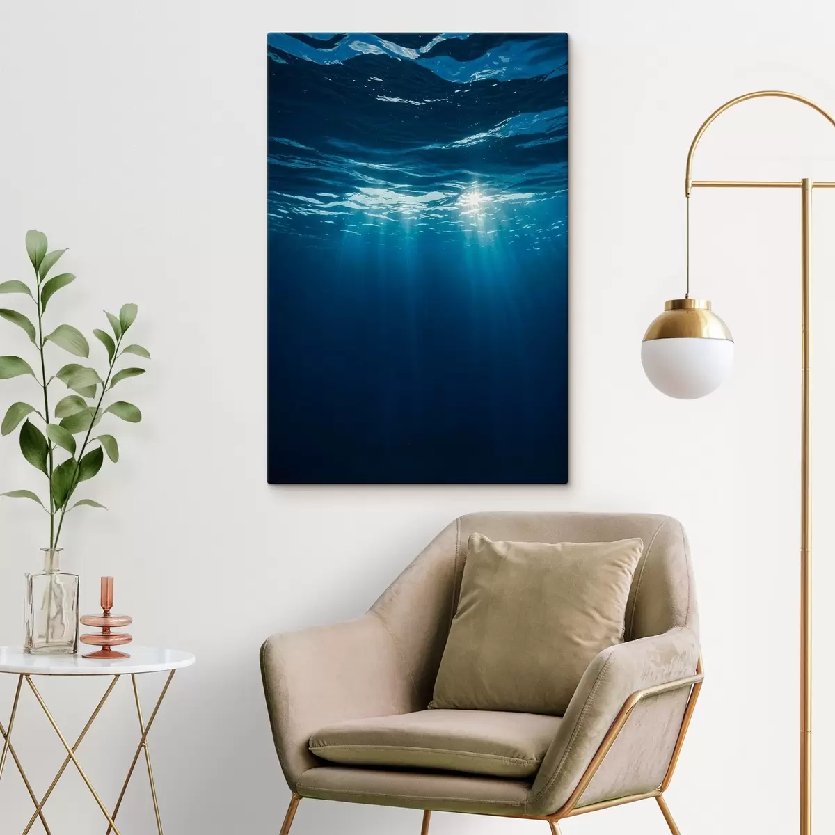 Vászonkép Fénysugarak a víz alatt a mélykék óceánban Nr s44897