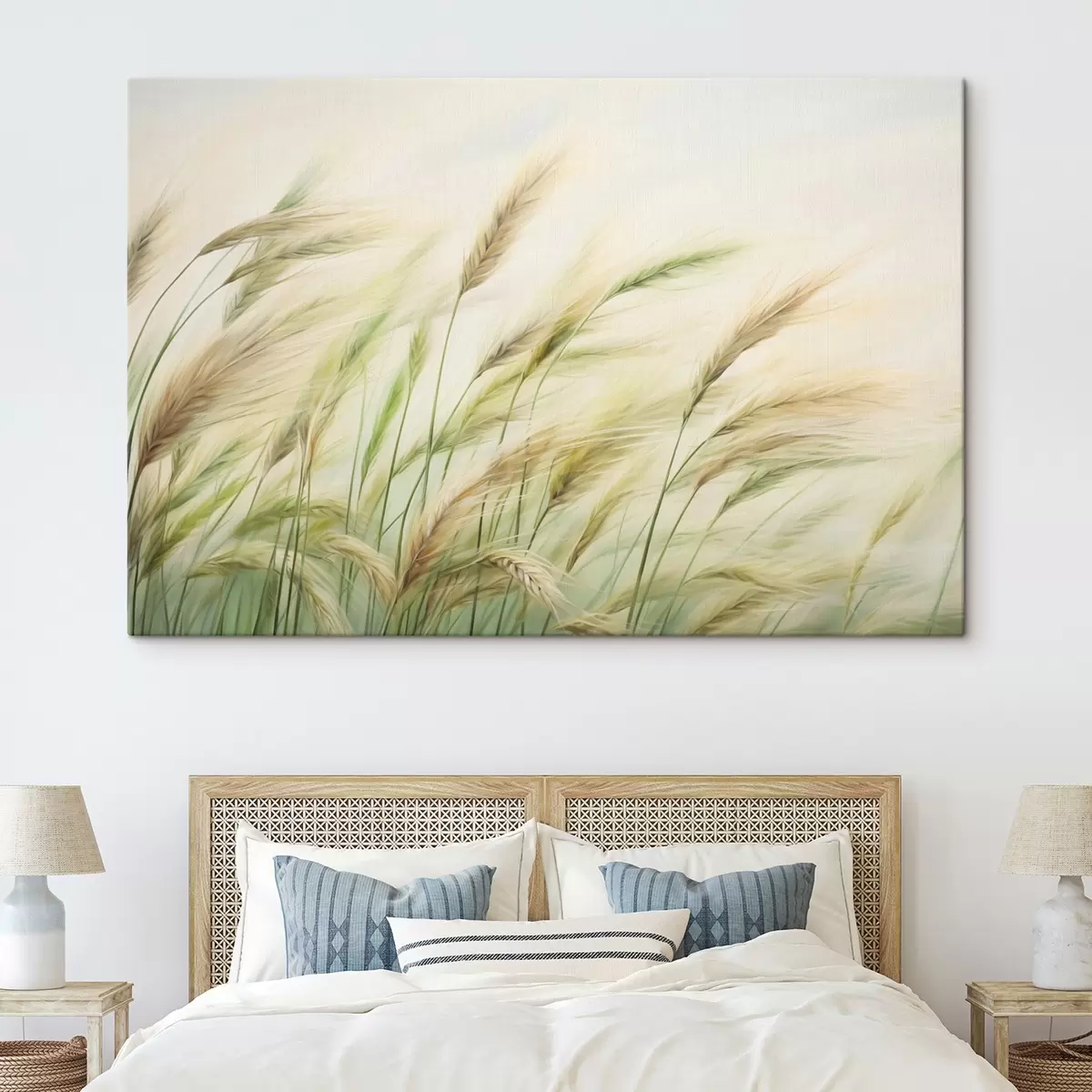 Vászonkép Búzamező sárga és zöld szemekkel, lágy ecsetvonásokkal és világos színpalettával, természetes atmoszférával Nr s44923